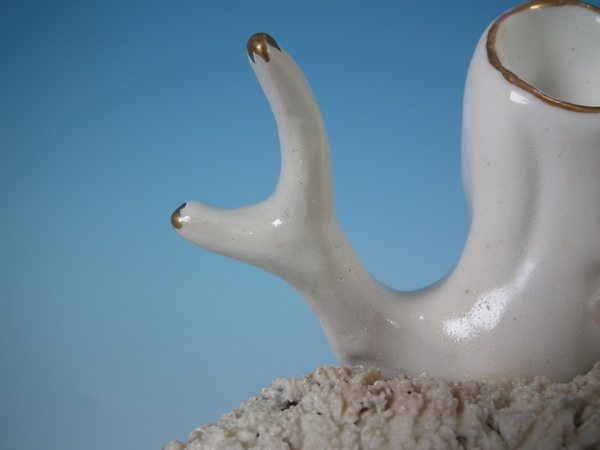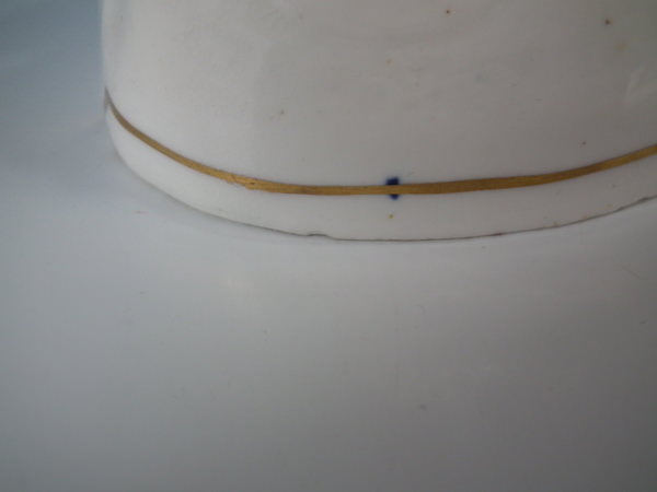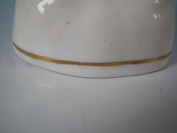 White and gilt version. Dull gilt base line and embellishment. Flatback, decorated only to the front.