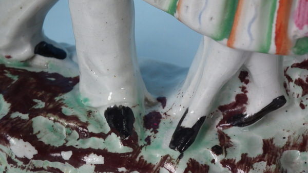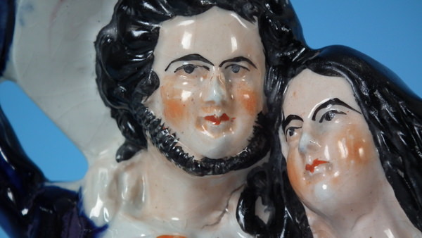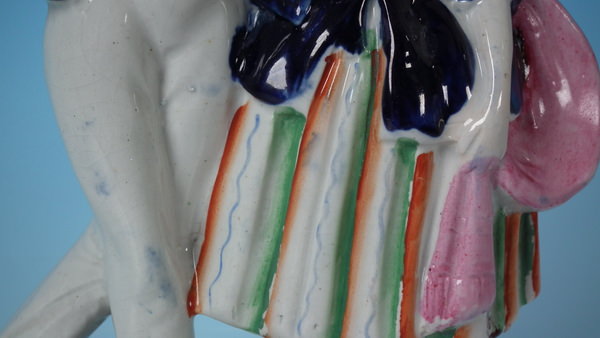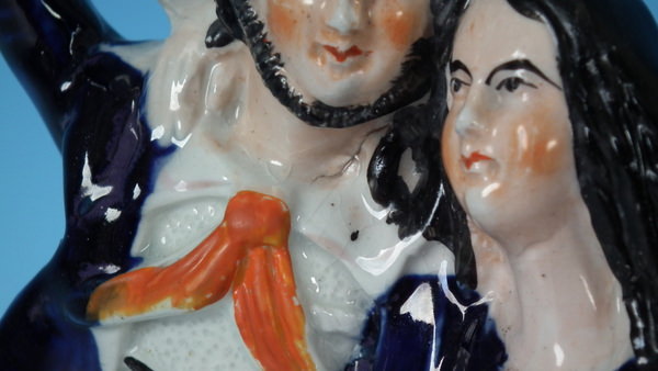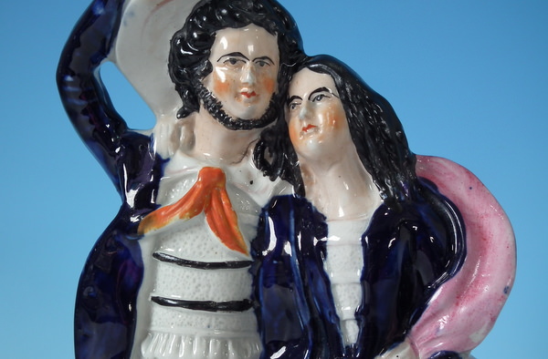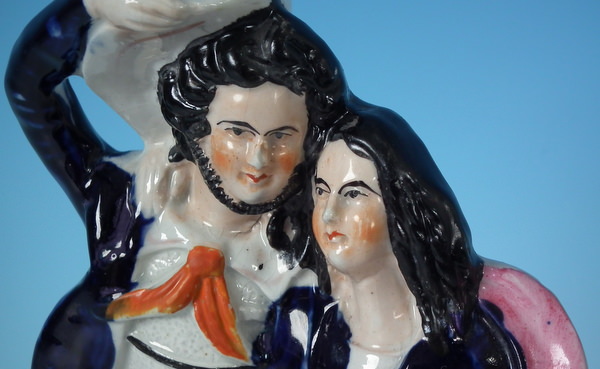 Staffordshire figure with a maritime theme which features a sailor and his lass, stood on a shaped base.