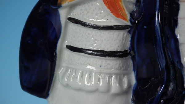Multi-coloured with underglaze blue version. Dull gilt embellishment.
