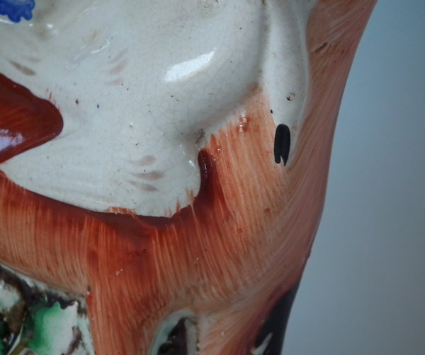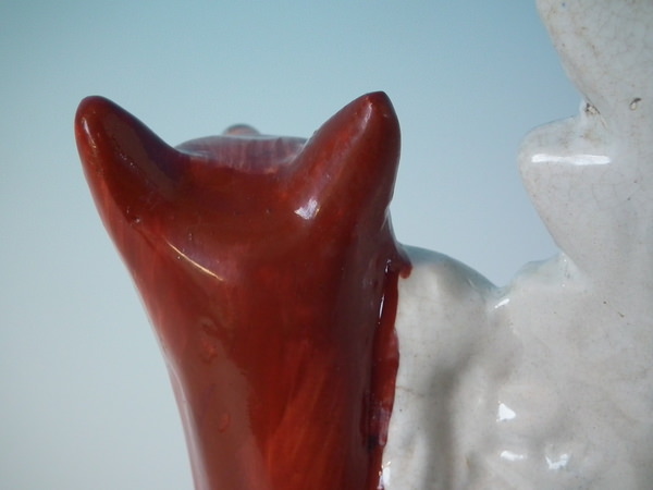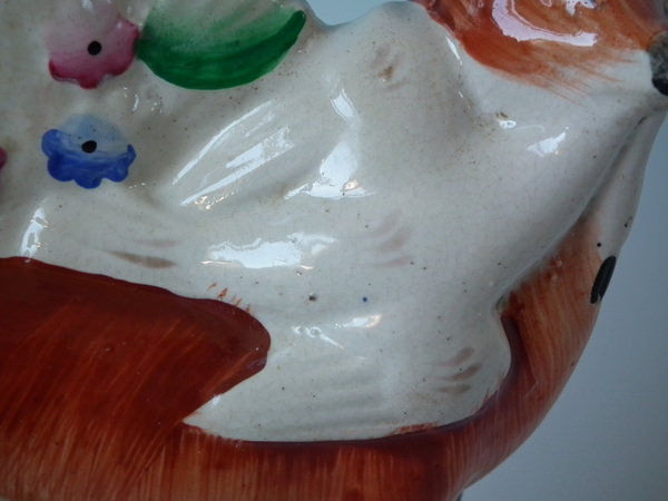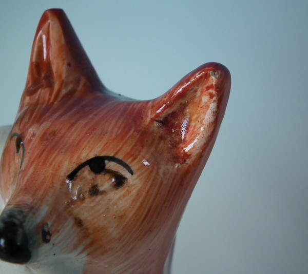 Retouched paint losses to ground, fox's head at reverse and his nose.