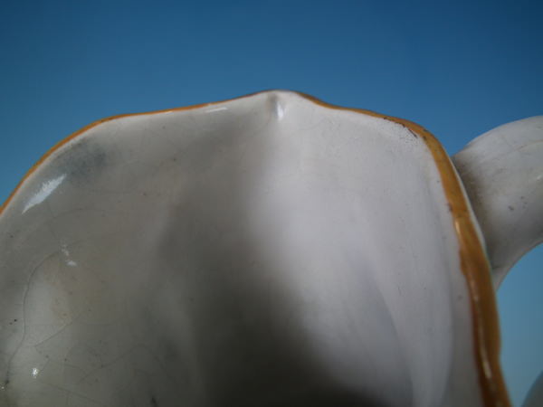 KILN EFFECTS: kiln soot caught in the glaze to the handle;