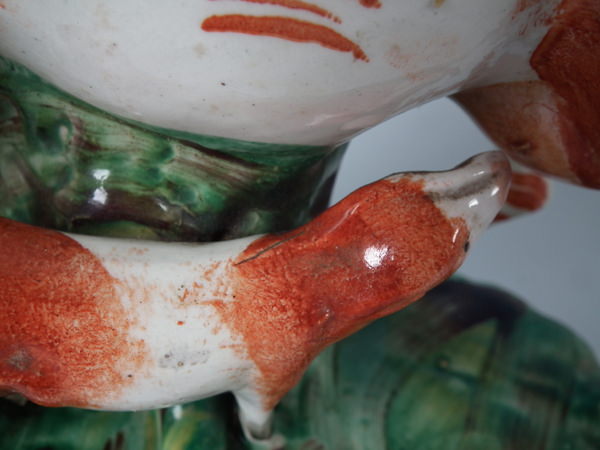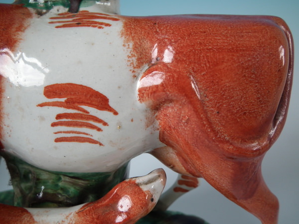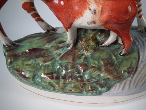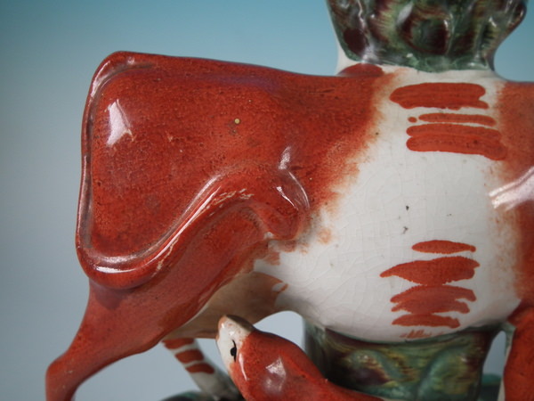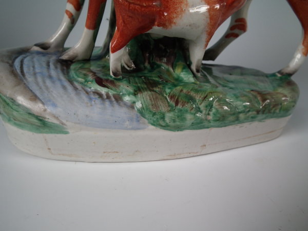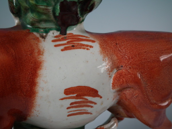 flecks of stray coloured glaze to cow's legs.