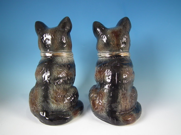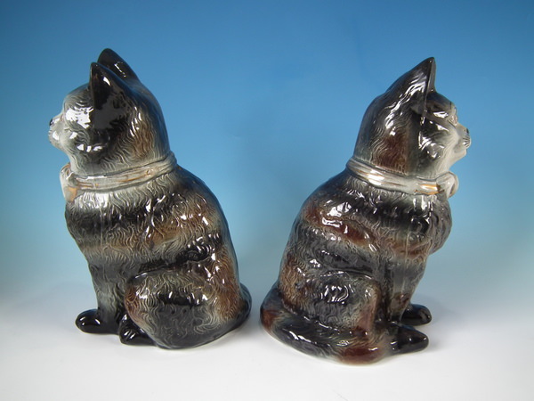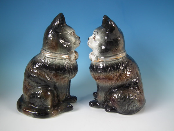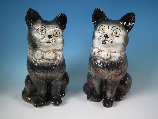 Large Matched Pair Staffordshire cats with glass eyes