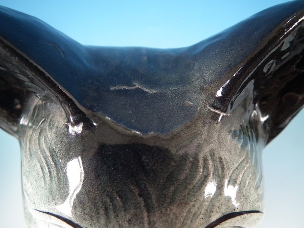 over glazed shrinkage line to the top of the cat's head.