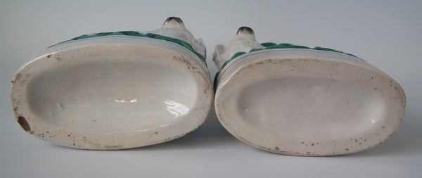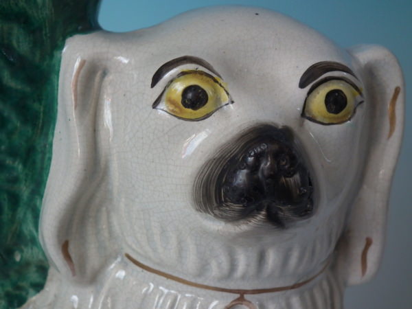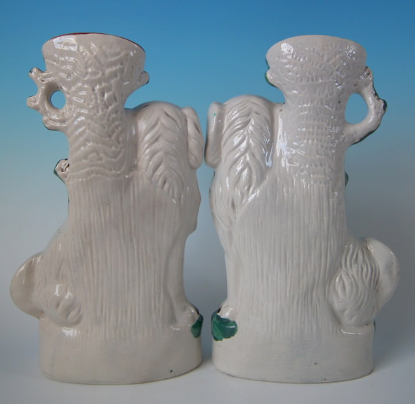 Pair Staffordshire spaniel spill vases