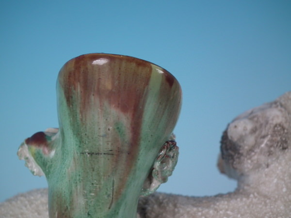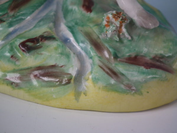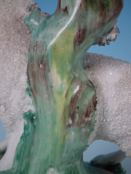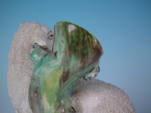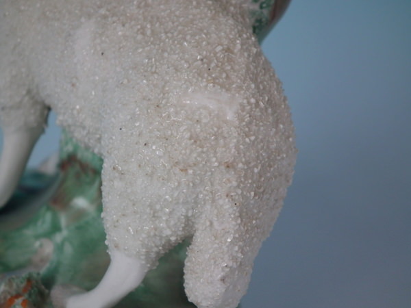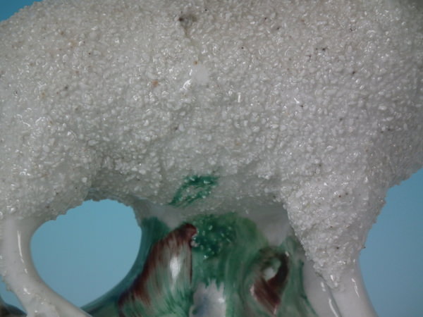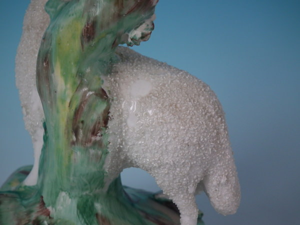 KILN EFFECTS: stray coloured glaze to ewe's stomach;