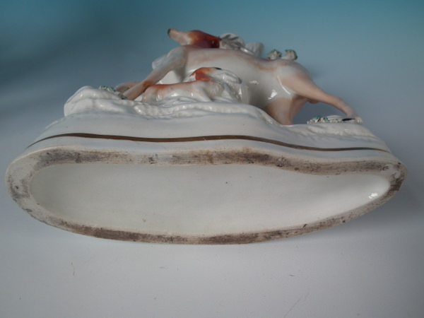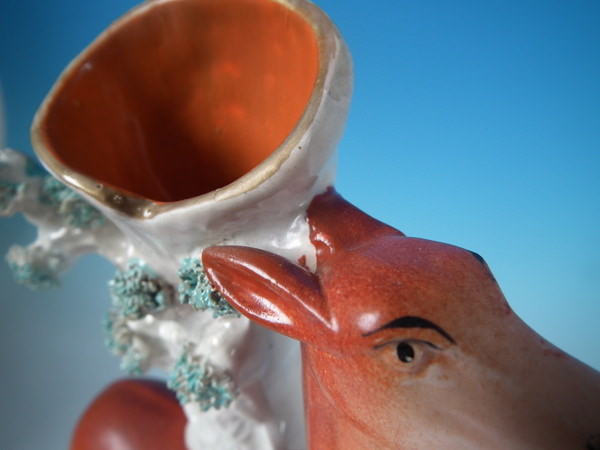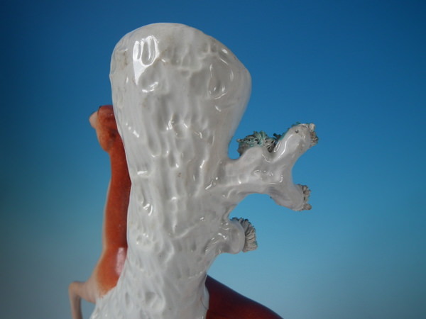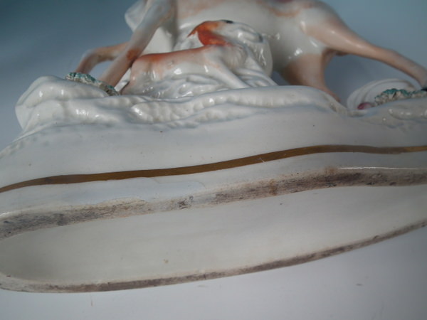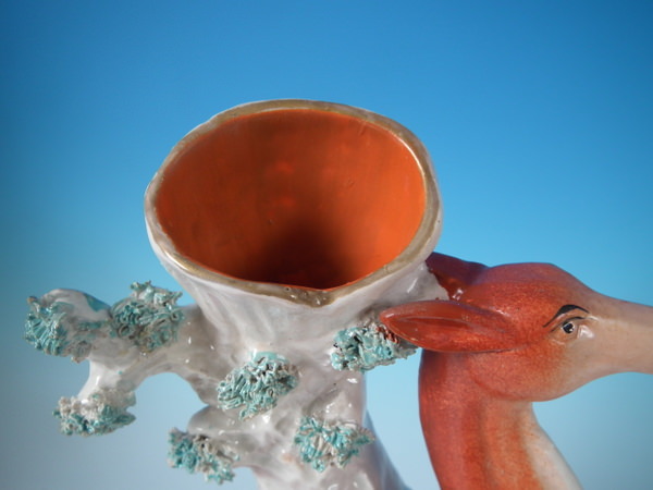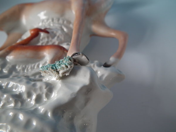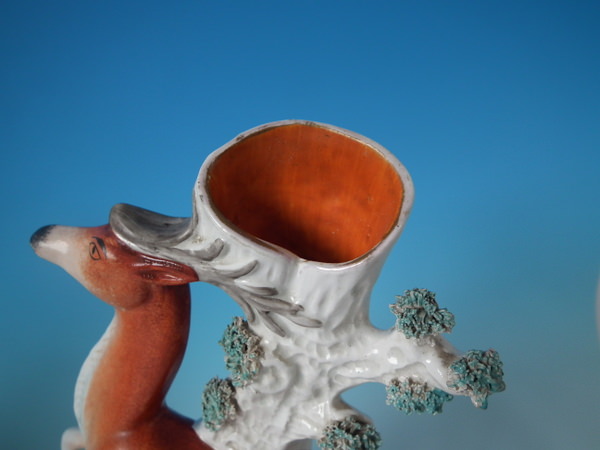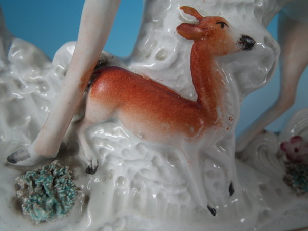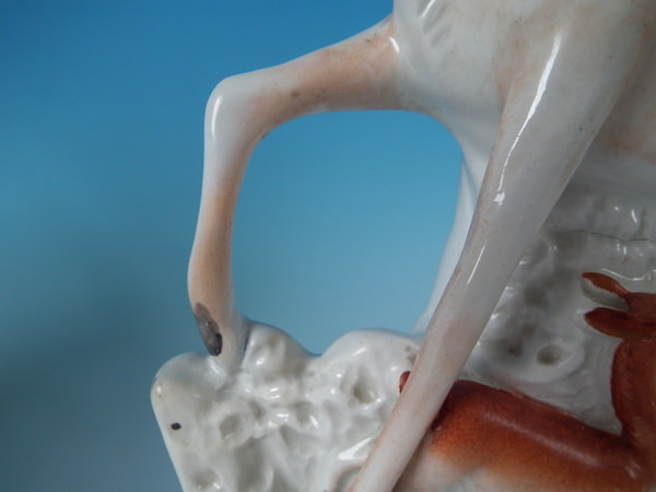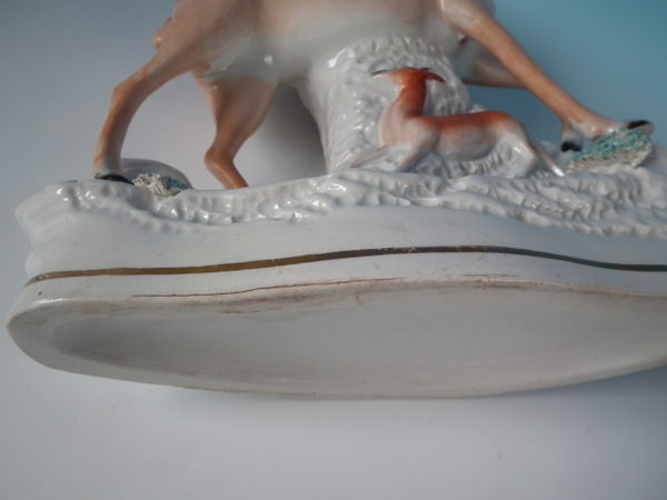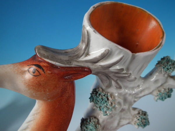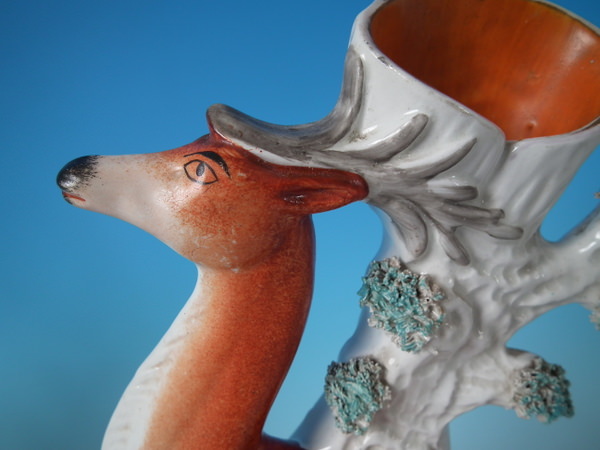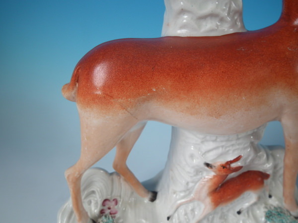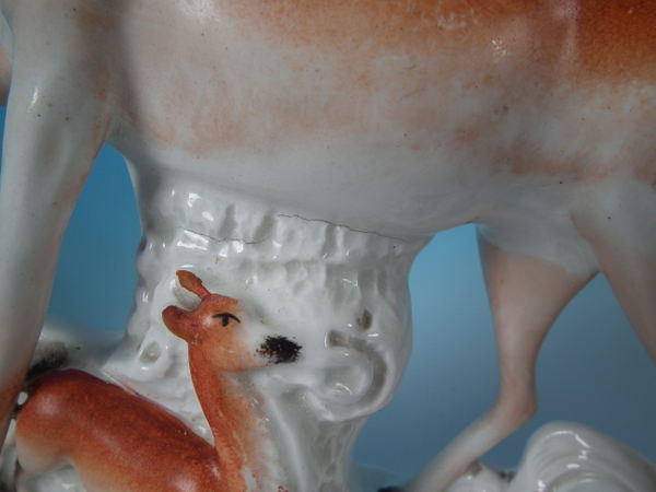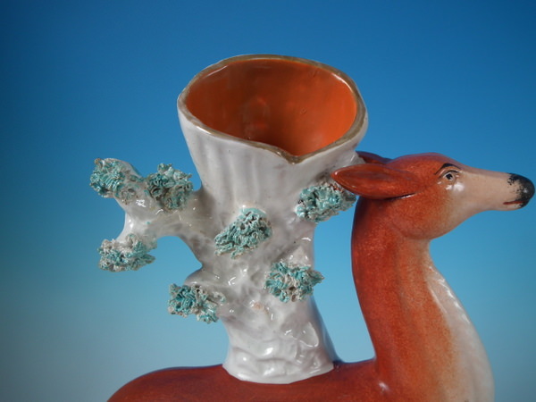 RESTORATION: Top front section of spill vase reglued including branches the join also runs around doe's left front ear, all joins retouched.
