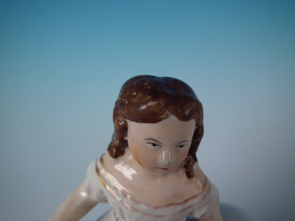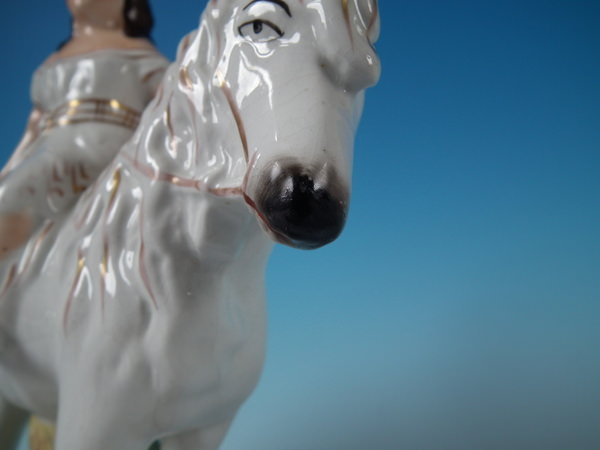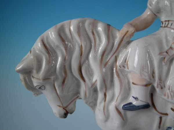 A few paint losses to ground, muzzle and girl's hair.