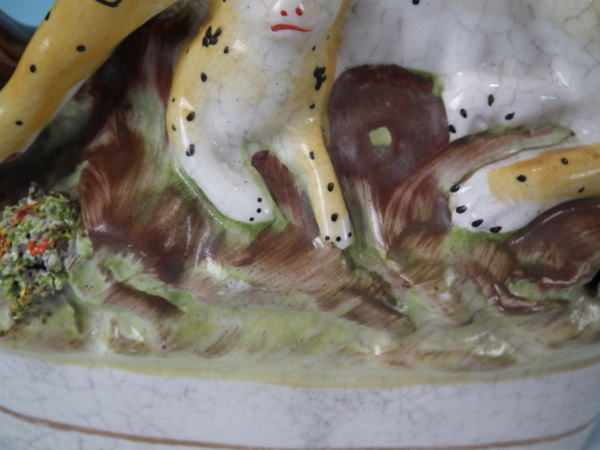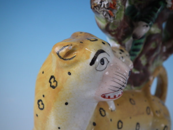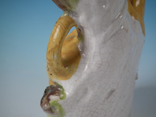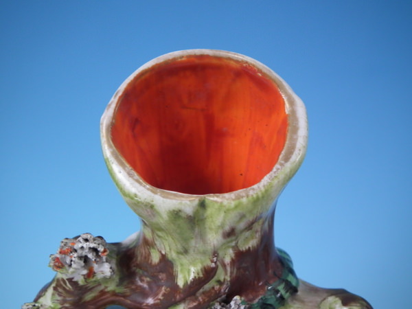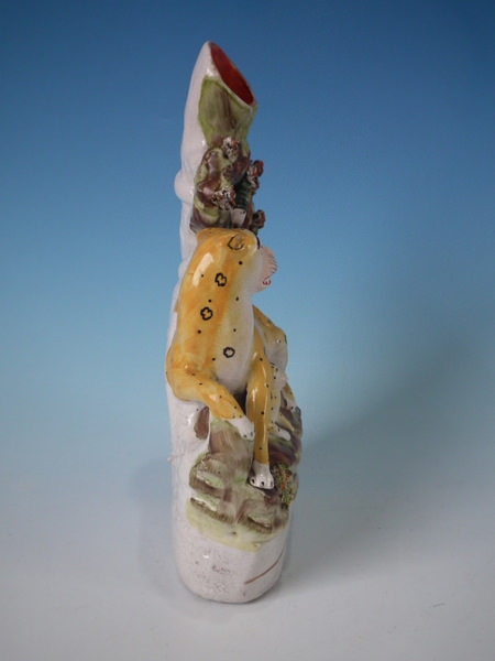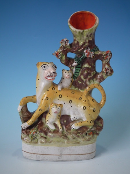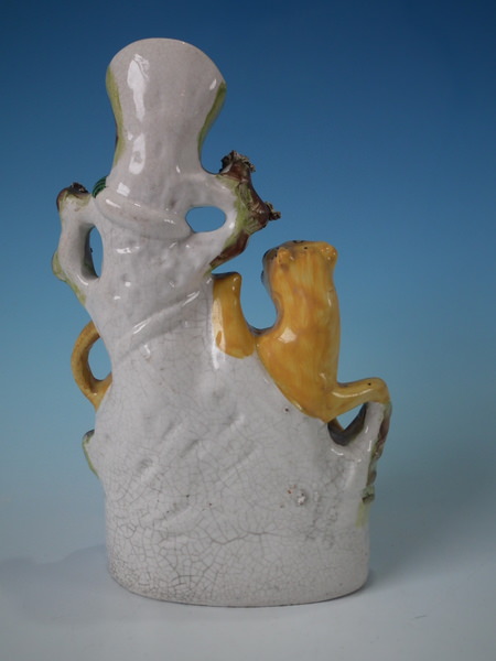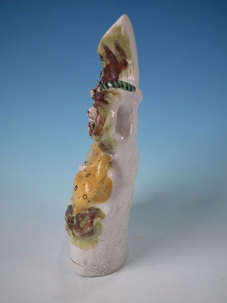Victorian, circa 1860. 9.8ins high, 5.1ins wide, 2.8ins depth. Staffordshire spill vase which features a snake wrapped around the tree
