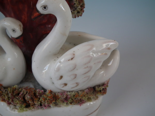 Staffordshire swan&cygnet spill vase