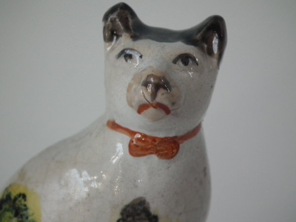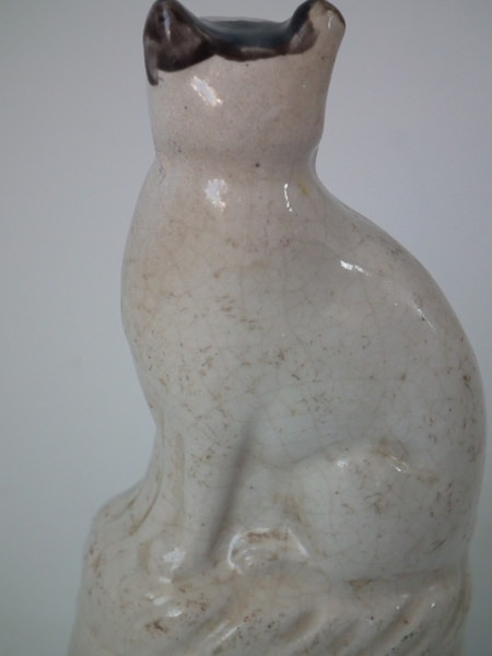RESTORATION: Stabilised and retouched crack to cat's head and front of neck.