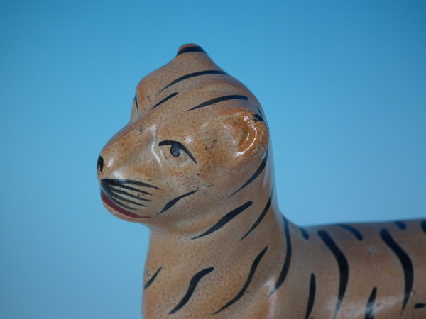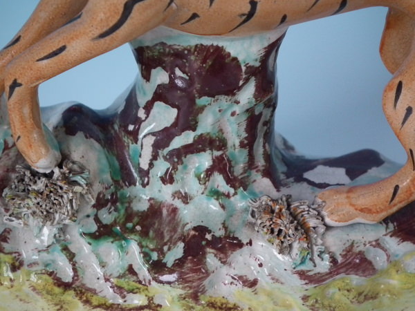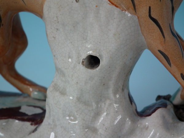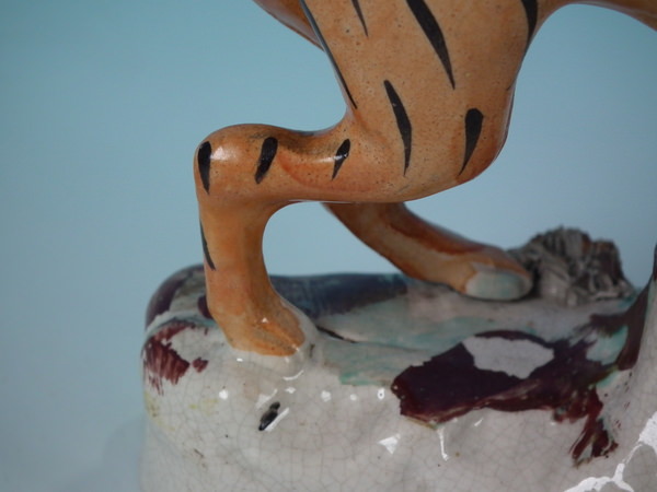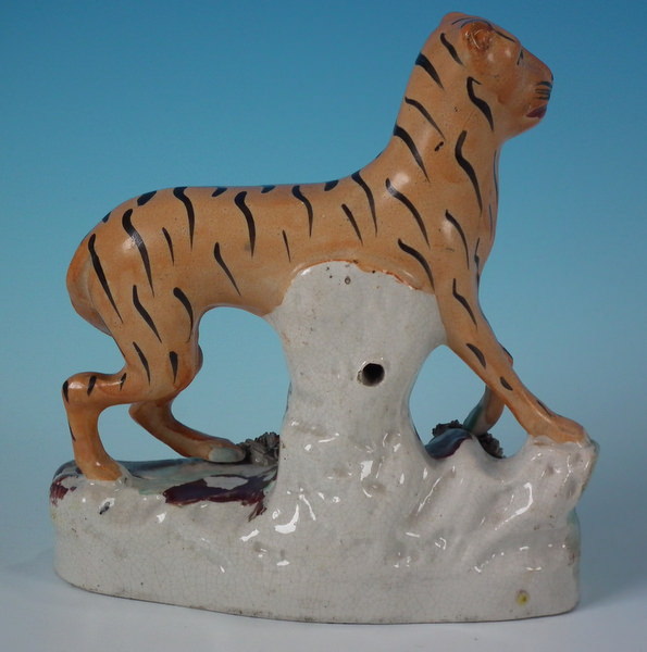 Staffordshire figure which features a tiger, stood on a shaped base.