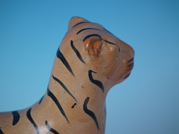 RESTORATION: stabilised and retouched hairline to tiger's right hind leg.