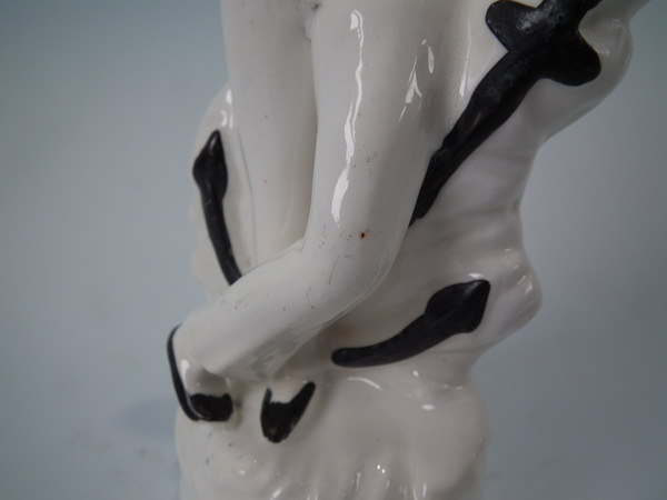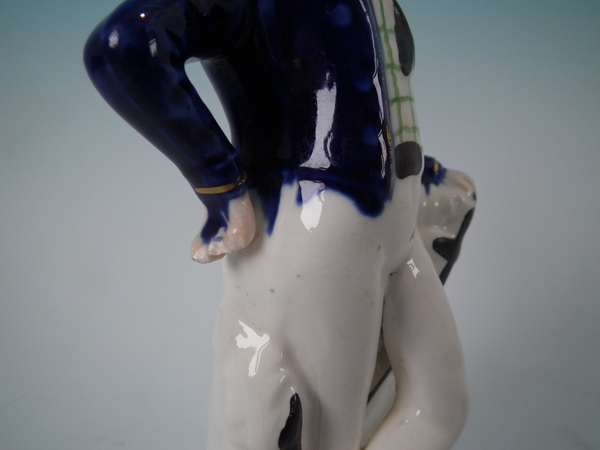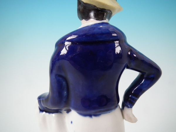 Staffordshire porcellaneous figure with a maritime theme which features a sailor resting on an anchor, stood on a circular base.