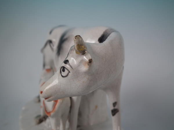 Pair Staffordshire Black and white cow & calf figures