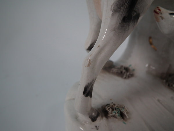 RESTORATION: left horn reglued and join retouched;