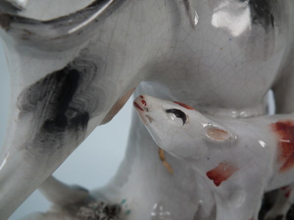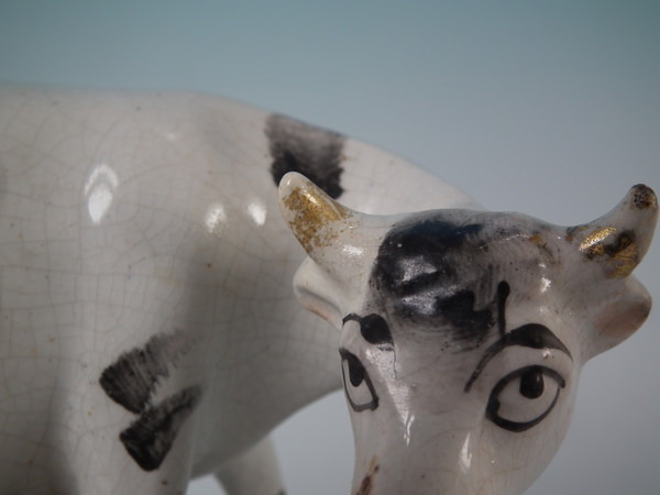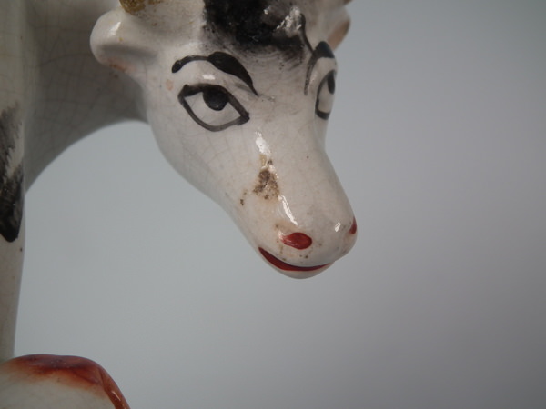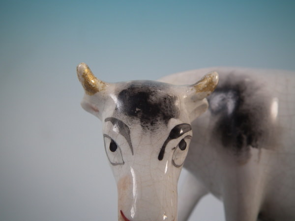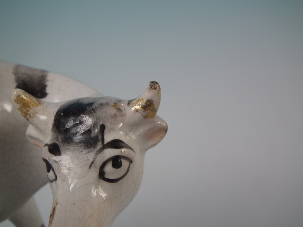 KILN EFFECTS: kiln grit caught in the glaze to the cow's nose.