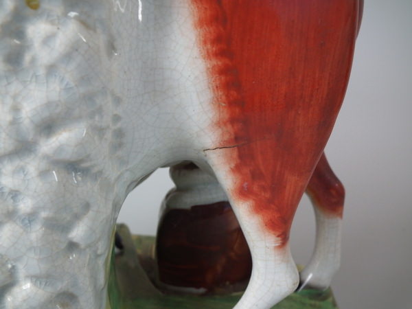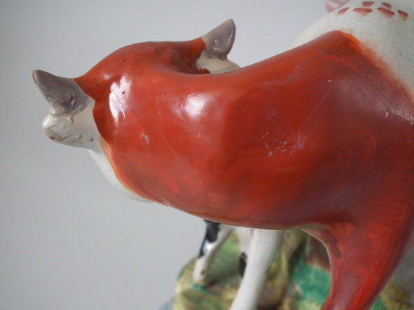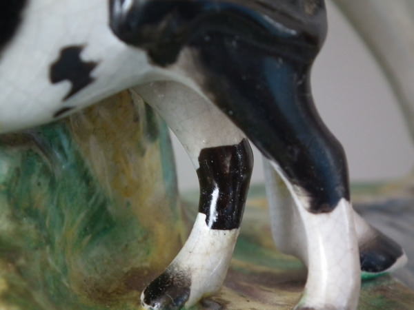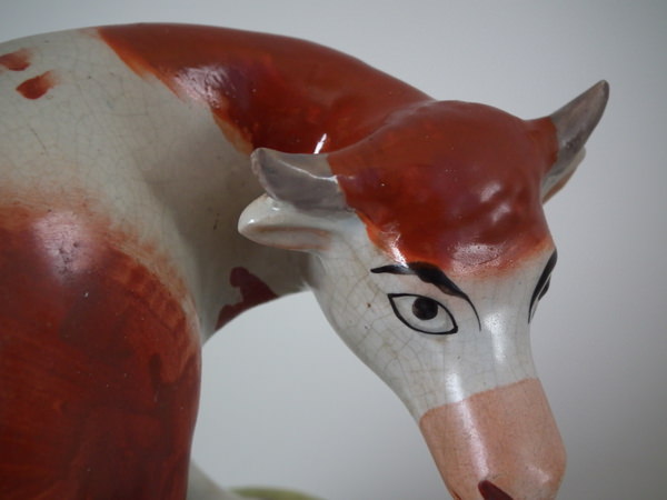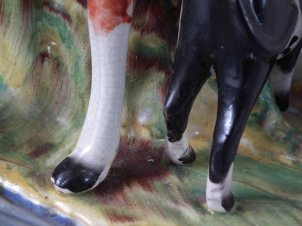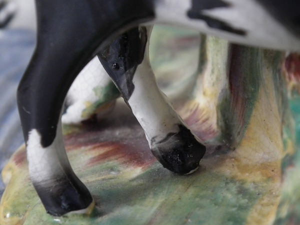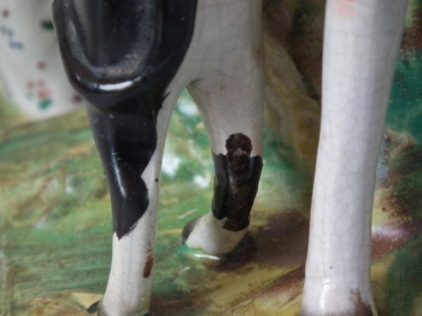 RESTORATION: Cow's head reglued and join retouched.
