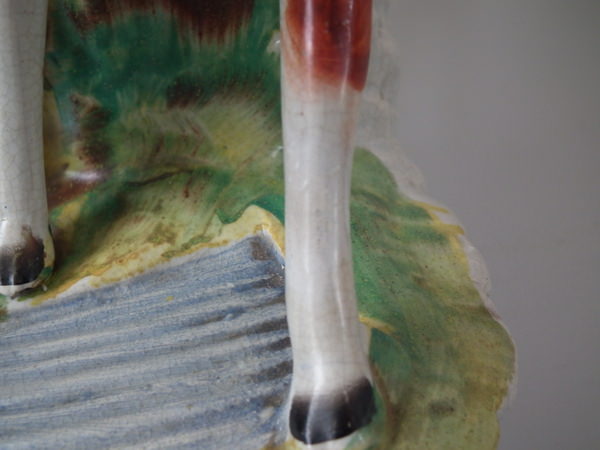 Retouched paint losses to markings on the calf.