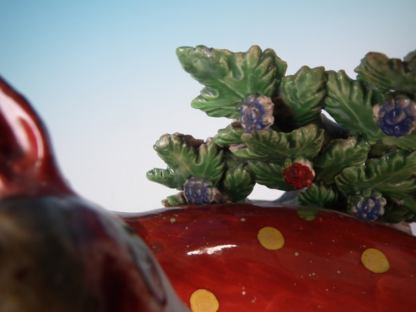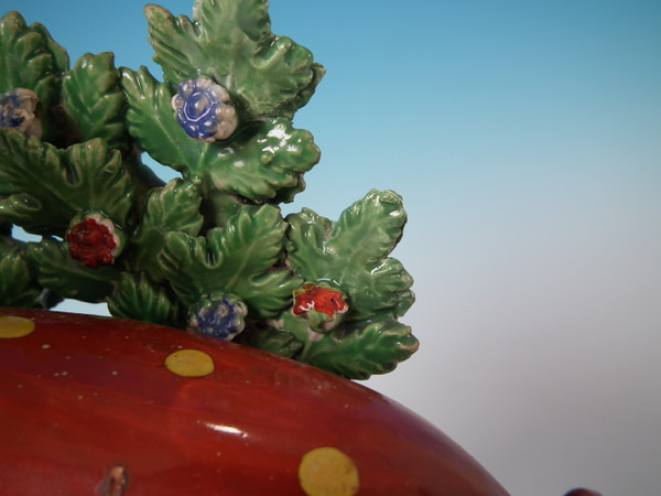 Multi-coloured version. Decorated 'in the round' - decoration to front and reverse.