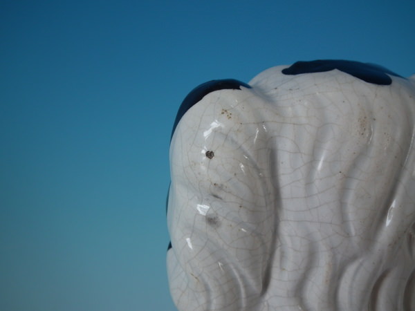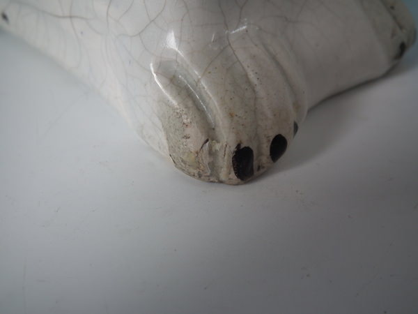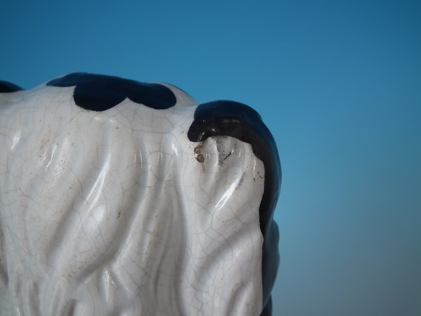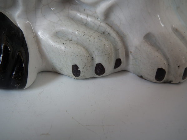 RESTORATION: Retouched flakes to both eyebrows and one next to left ear, muzzle, tail and front right leg.