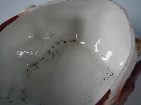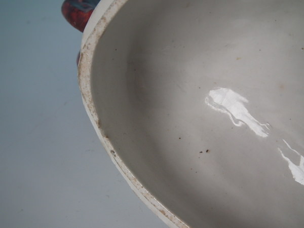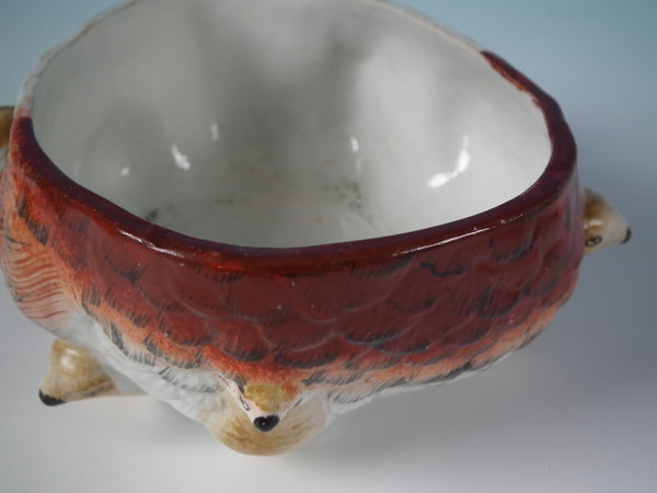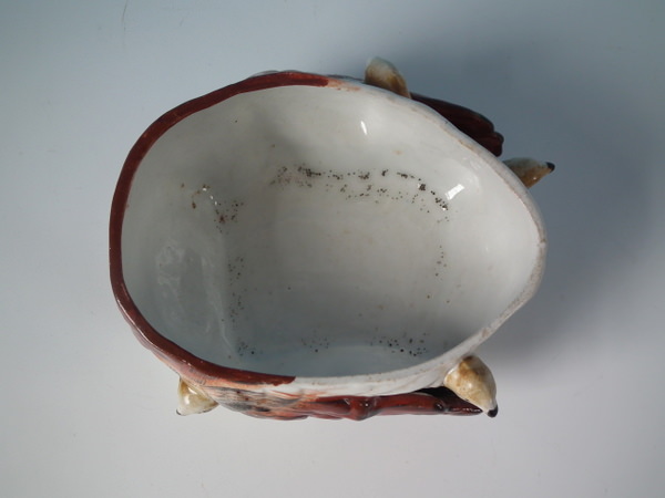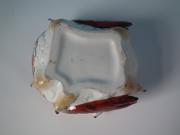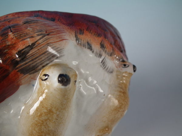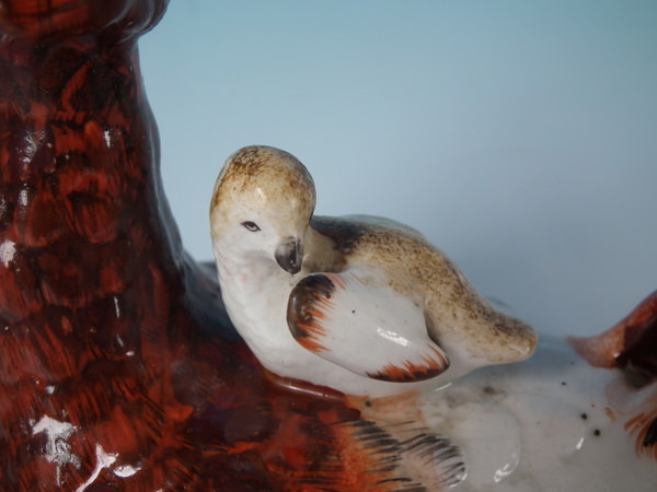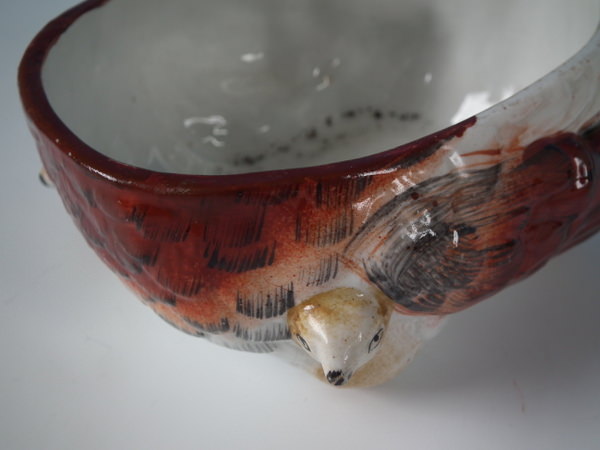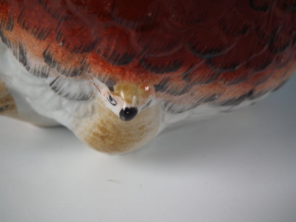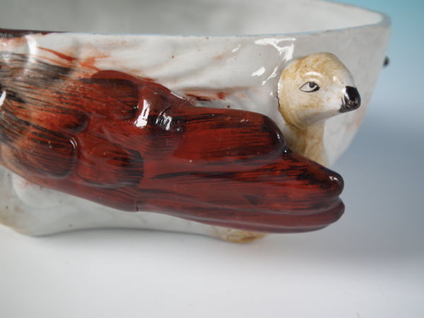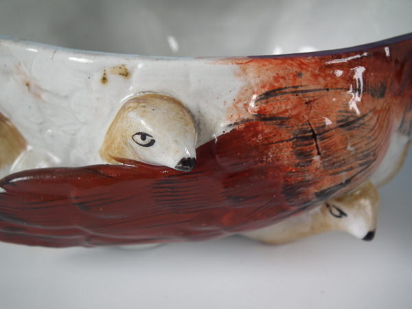 Victorian, circa 1860. 6.5ins high, 6.7ins wide, 5.1ins depth. Staffordshire tureen with cover which features a hen with her seven chicks,