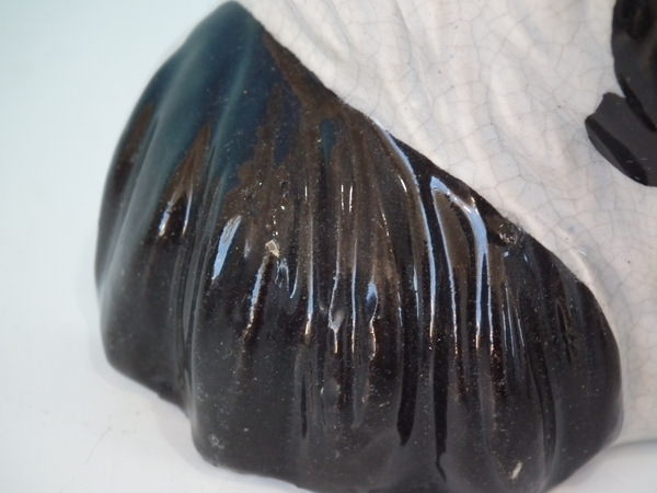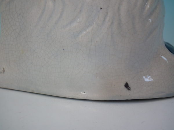 RESTORATION. Stabilised and retouched crack across the front from the left ear down to the tail.