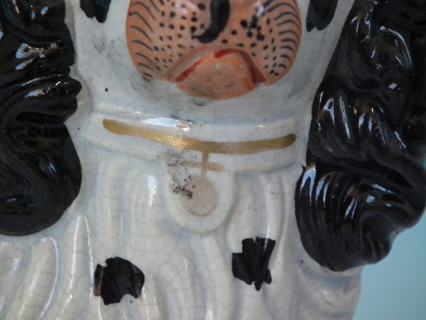 Retouched paint losses to paws and muzzle.
