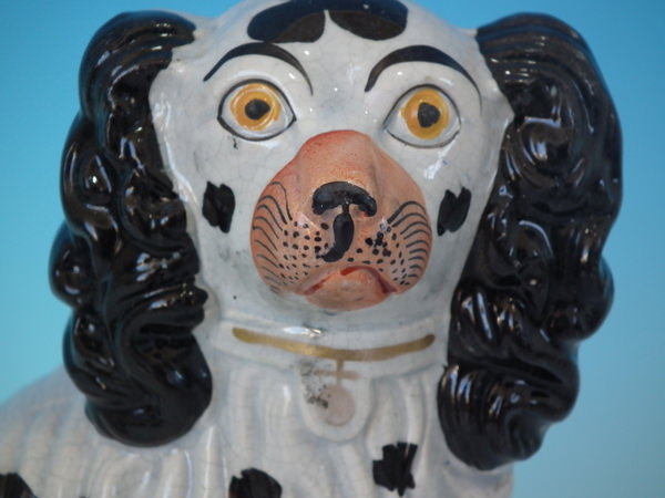 Pair Staffordshire No.4 black&white spaniels