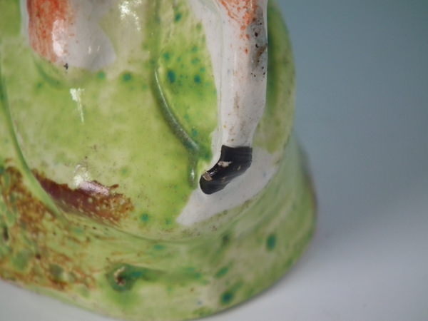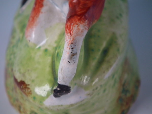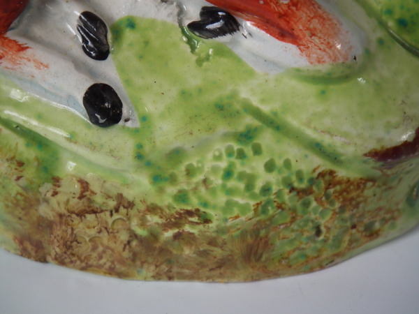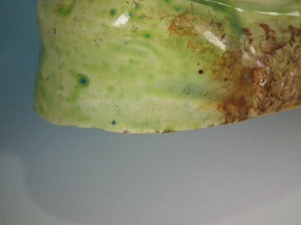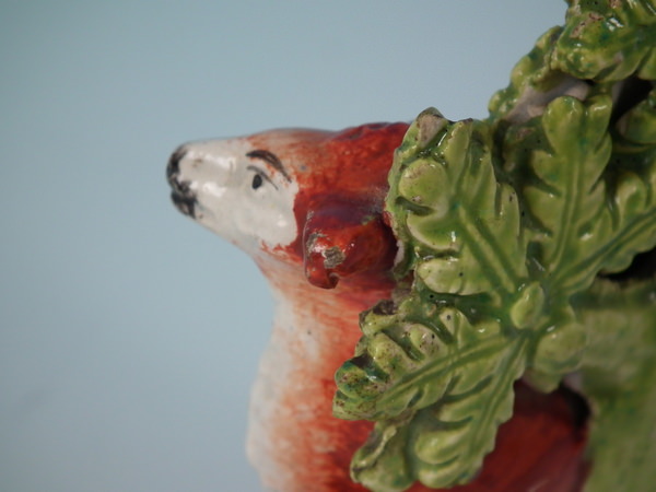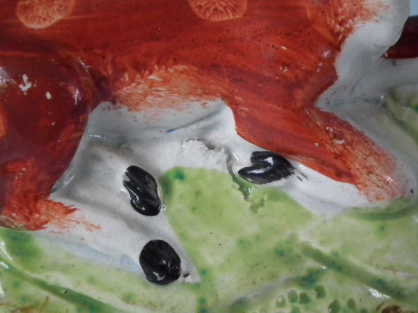 KILN EFFECTS: flecks of stray green glaze to the stag;