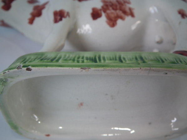 Small flake to rim of the hole in the cow's back.