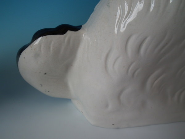 KILN EFFECTS: shrinkage line along the mold join to chest and front leg;