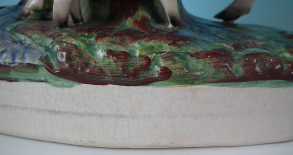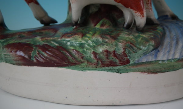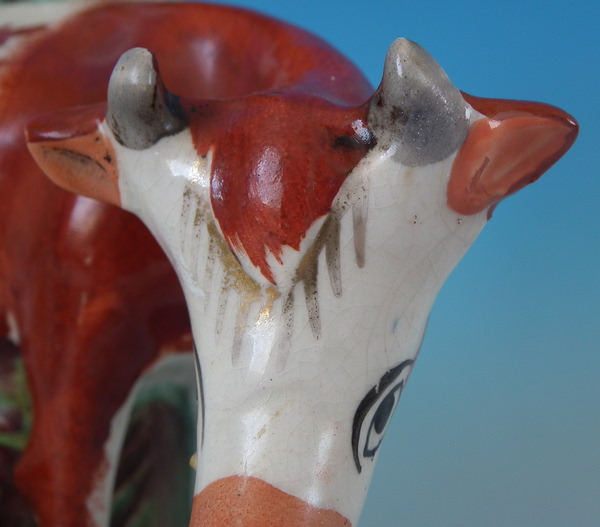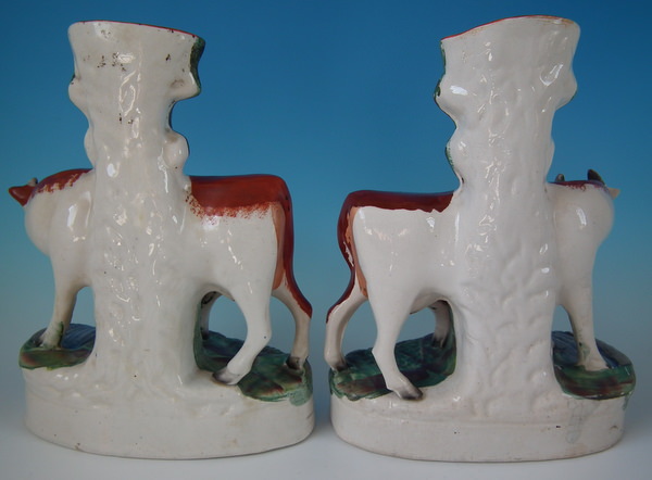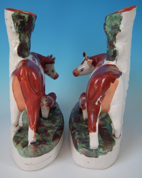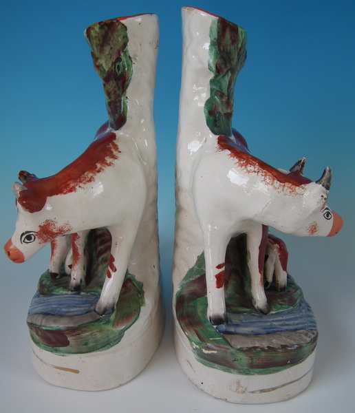 Pair Staffordshire cow & calf spill vases