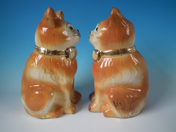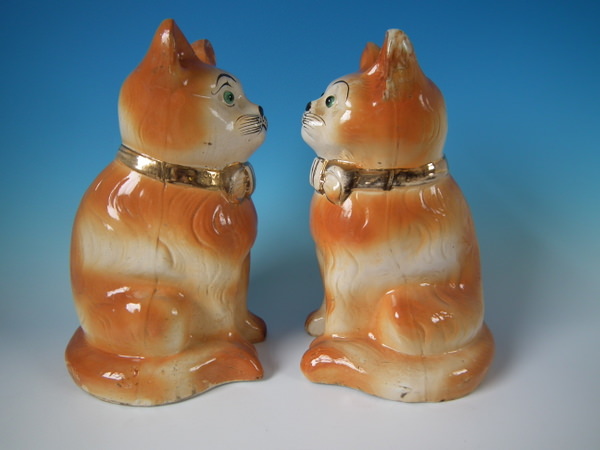 Large Pair Bo'ness Staffordshire cats with glass eyes