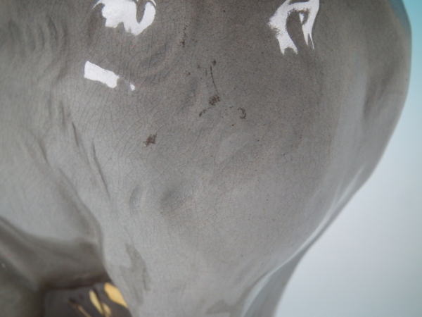 KILN EFFECTS: shrinkage crack to lower base edge below tail, and to both ears;