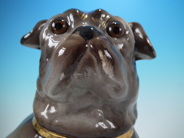 Pair Staffordshire pugs with glass eyes