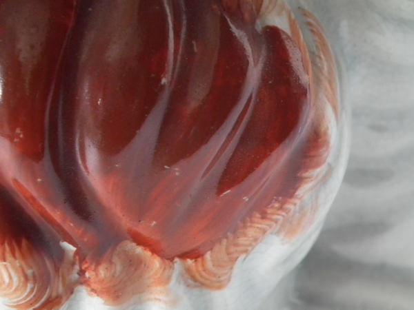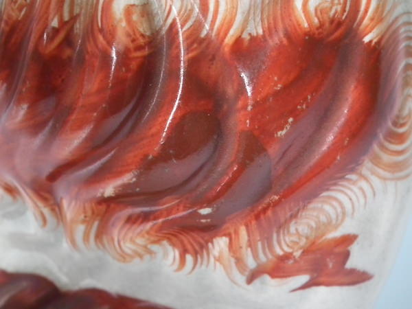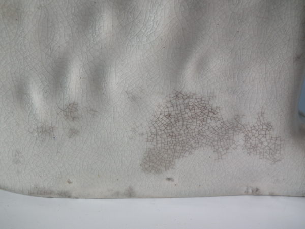 KILN EFFECTS: kiln detritus caught in the glaze to the reverse.