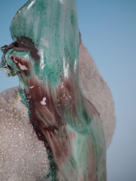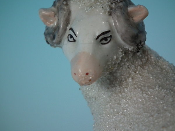 KILN EFFECTS: a few specks of kiln detritus caught in the glaze to his muzzle and ground.