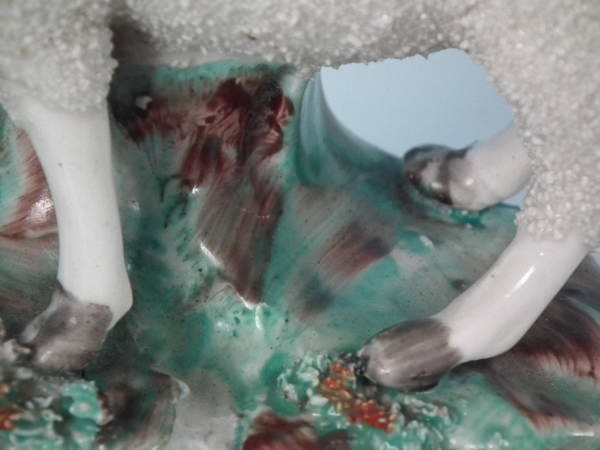 Ewe: Good. No restoration. A few paint losses to the ground and spill at the reverse.