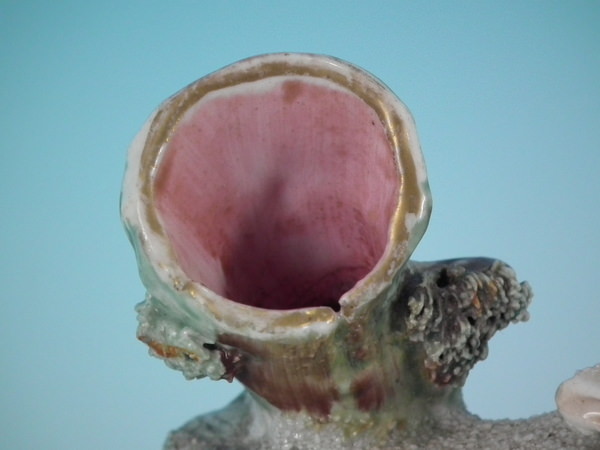 Multi-coloured version. Dull gilt embellishment. Decorated 'in the round' - decoration to front and reverse.