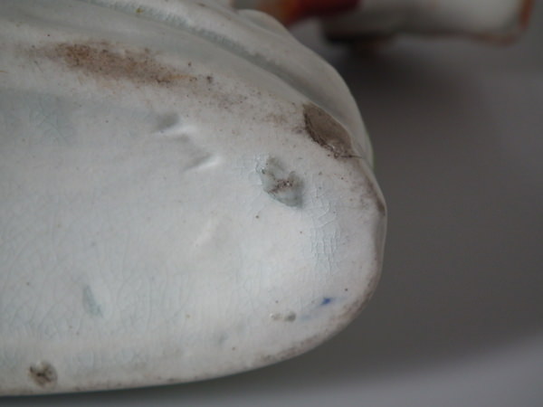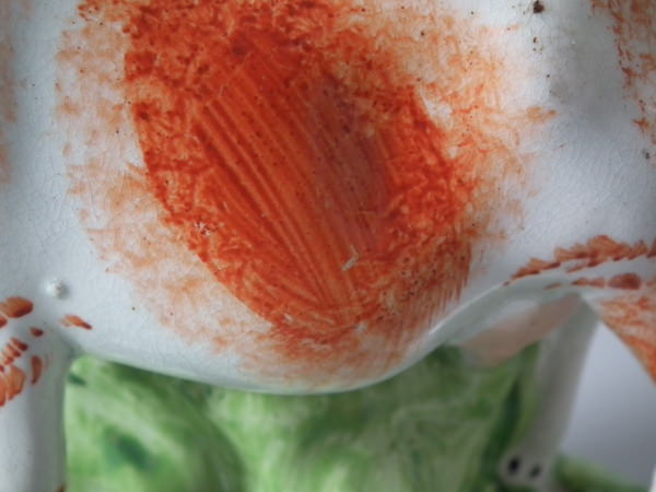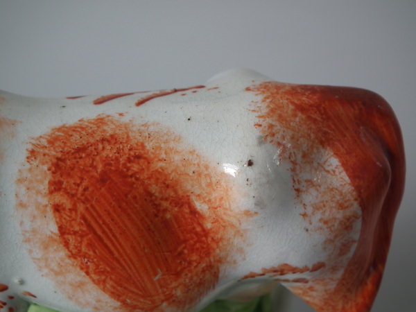KILN EFFECTS: a few specks of kiln detritus caught in the glaze to the cow