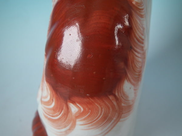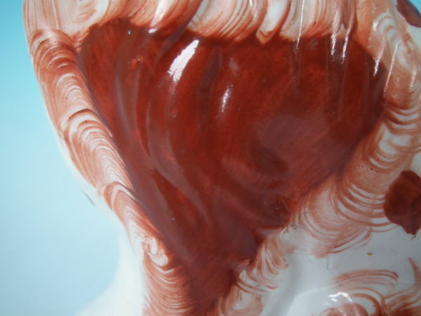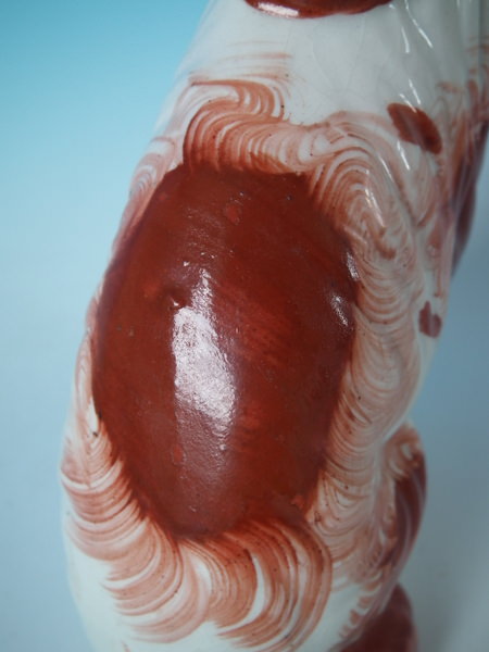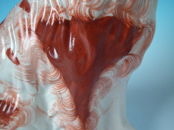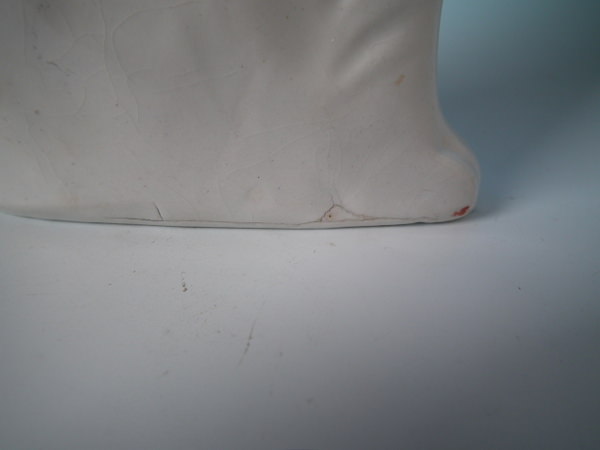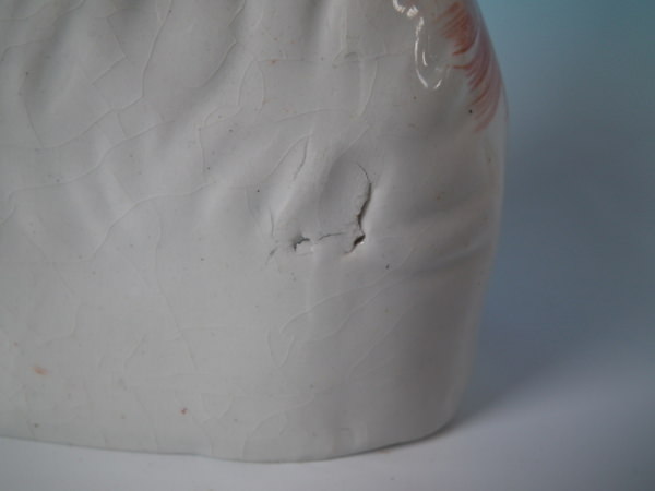 KILN EFFECTS: over glazed shrinkage lines to the left hind paw;