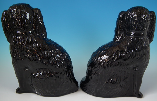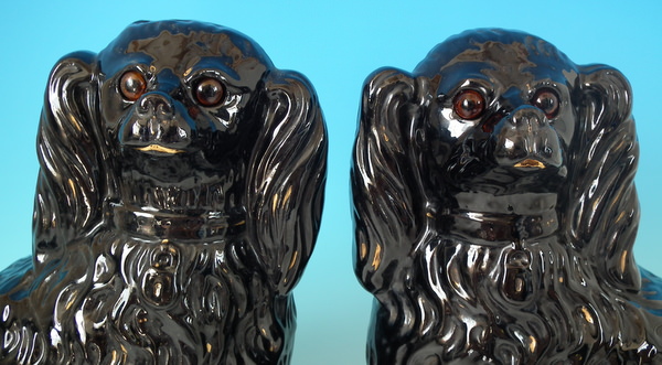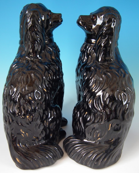 Pair Staffordshire Jackfield glass eyed spaniels