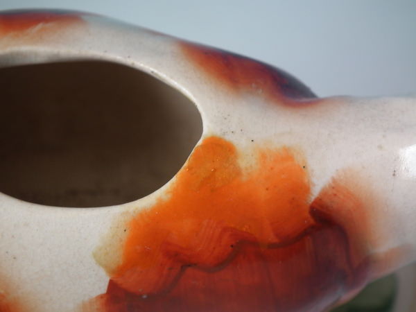 Decorated 'in the round' - decoration to front and reverse. Hole with cover to cow's back. Mouth forms a pouring hole.