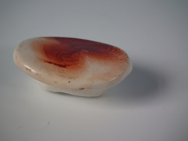 Russet and white version. Bright gilt base line and embellishment. Decorated 'in the round' - decoration to front and reverse.