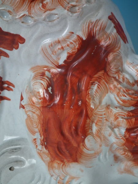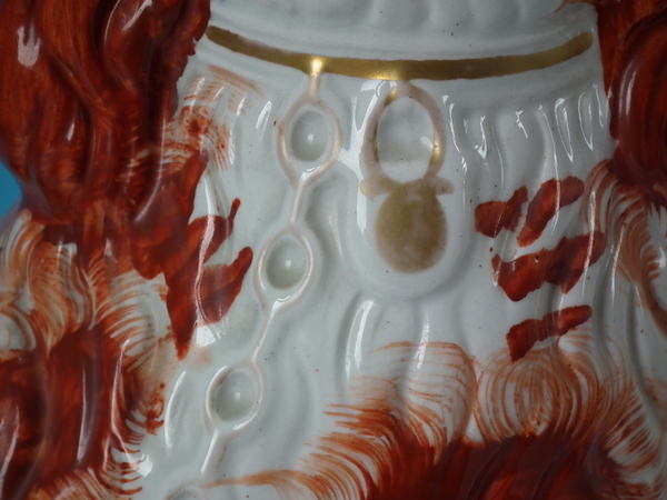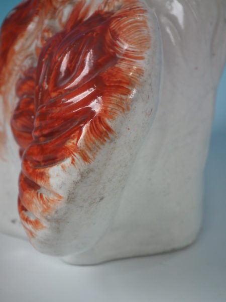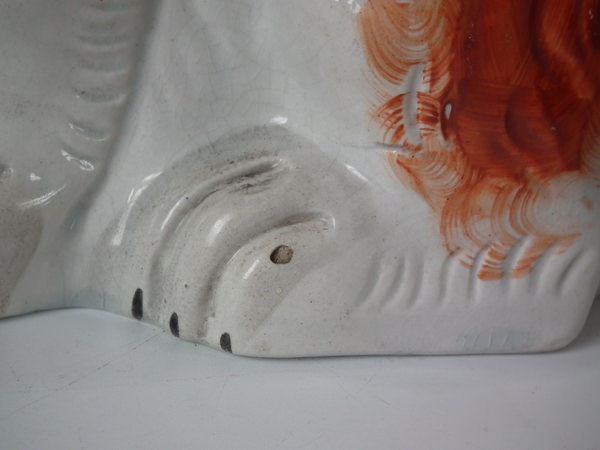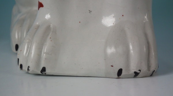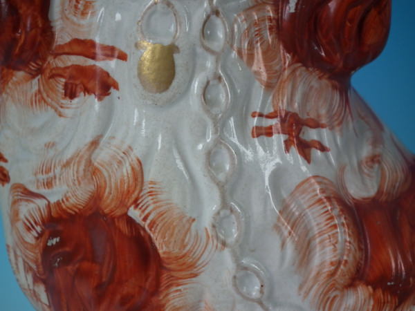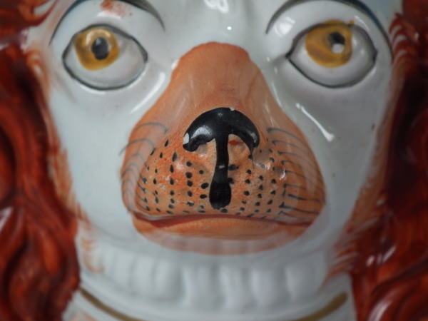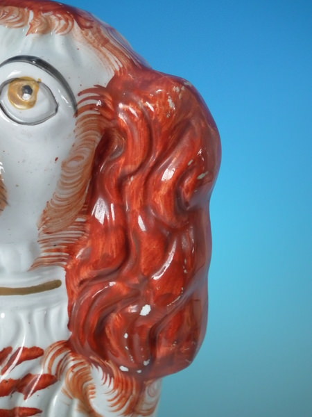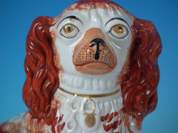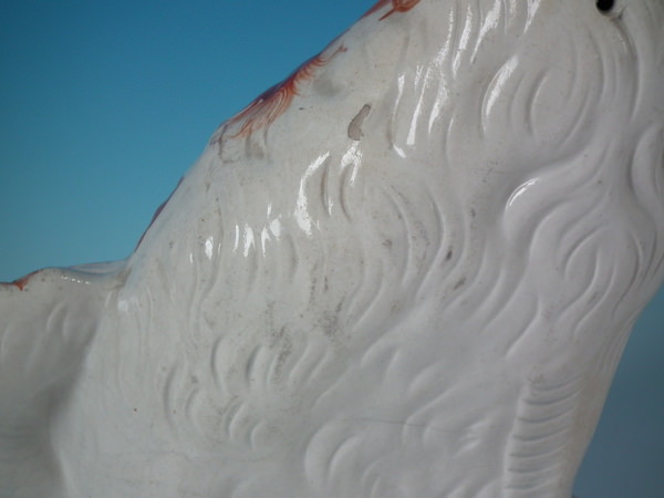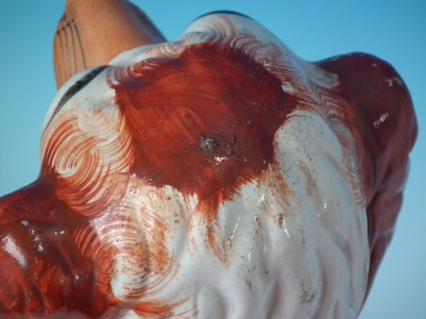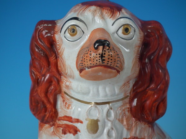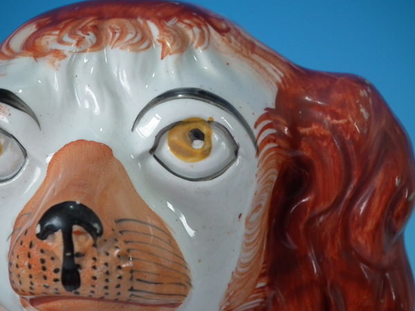 kiln detritus caught in the glaze to the top of the spaniel's head.