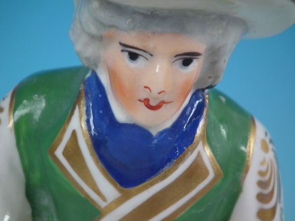 Multi-coloured version. Dull gilt embellishment. Decorated 'in the round' - decoration to front and reverse.