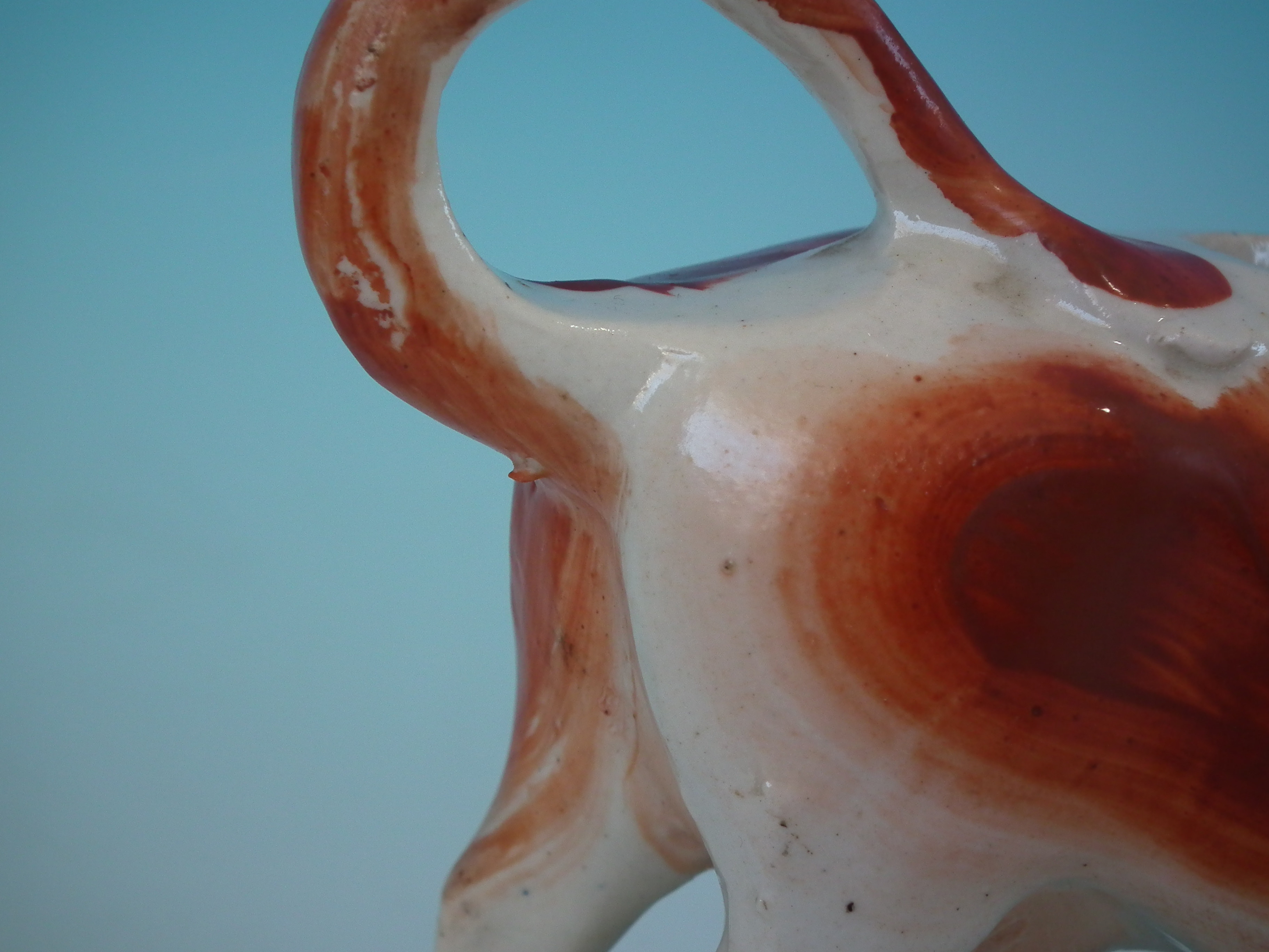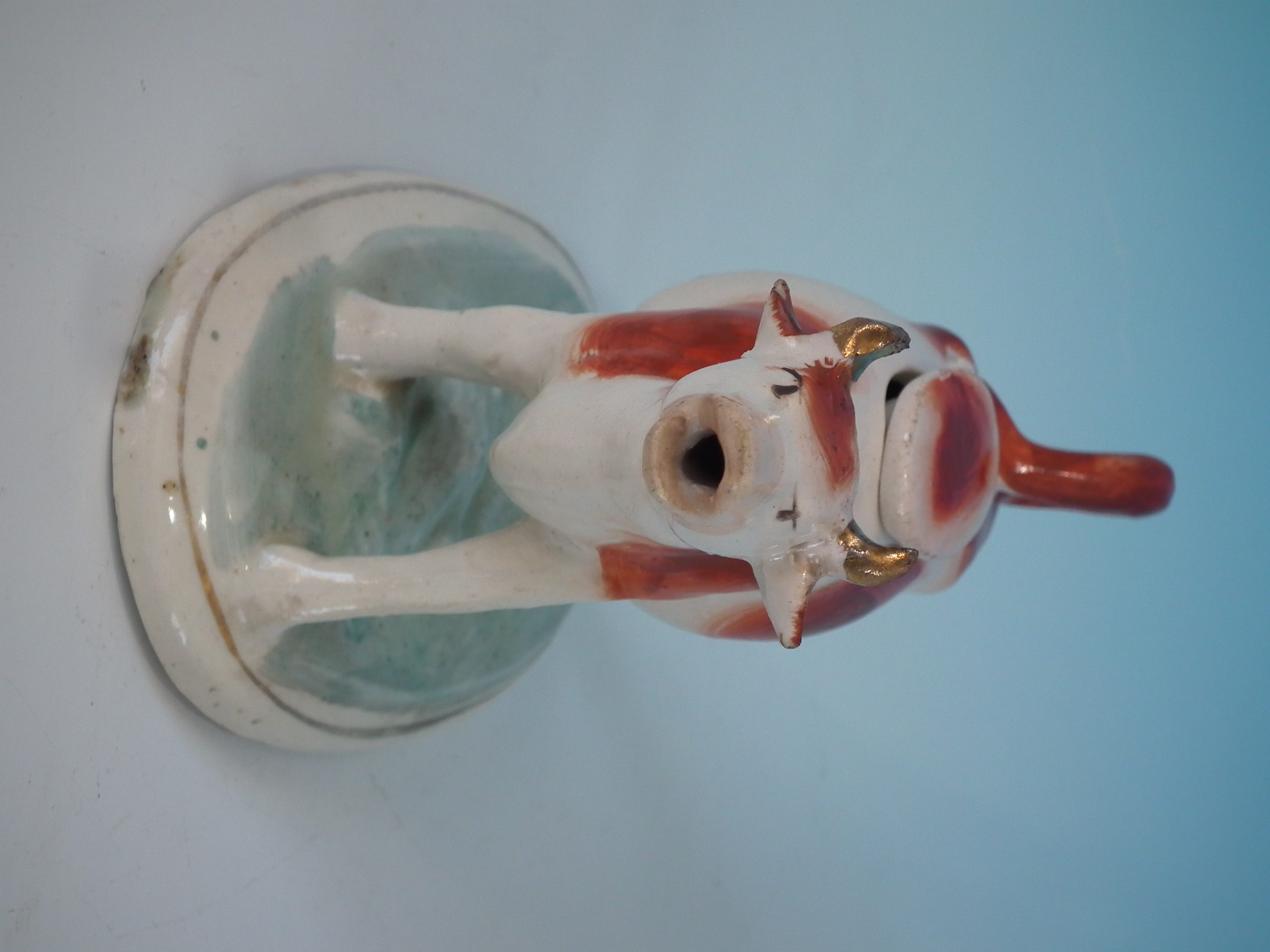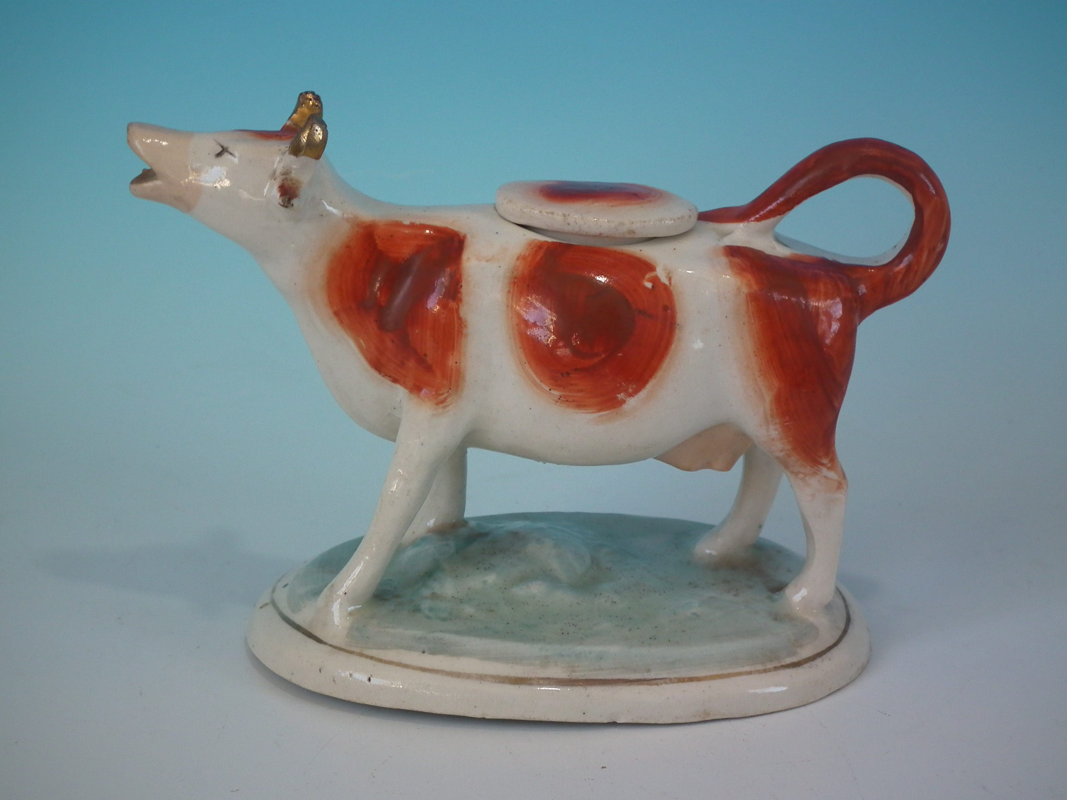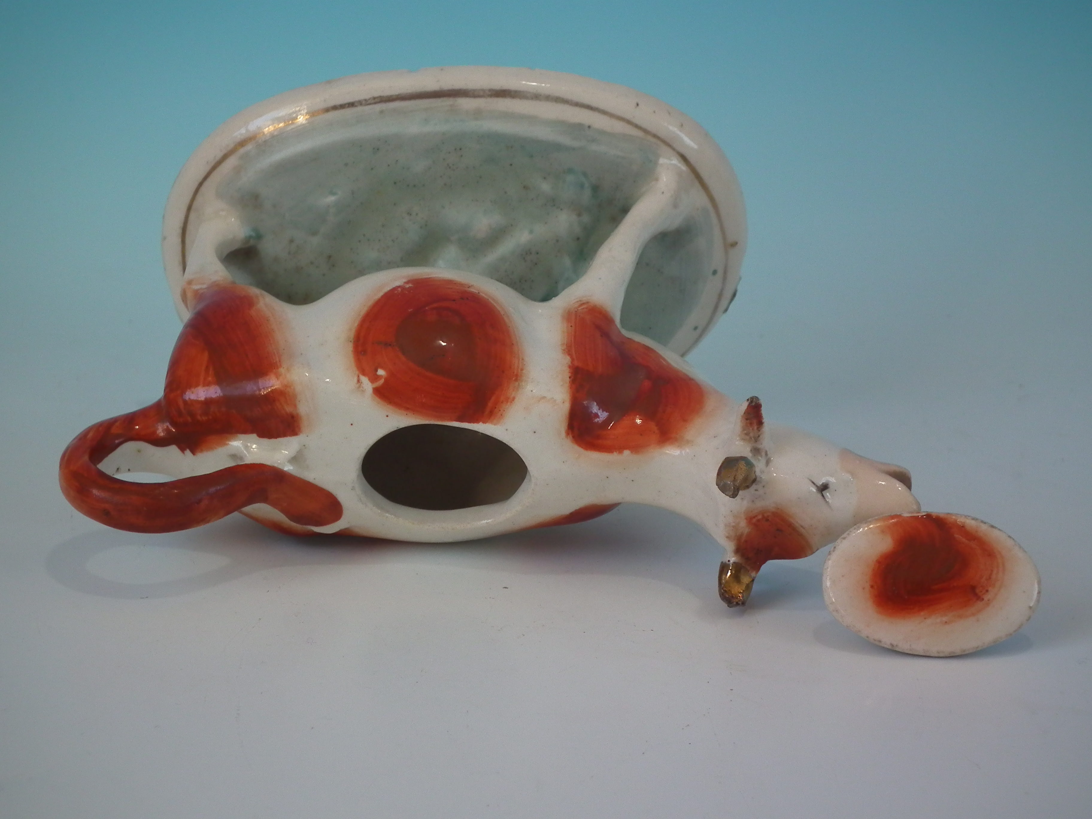 Staffordshire russet & white cow creamer