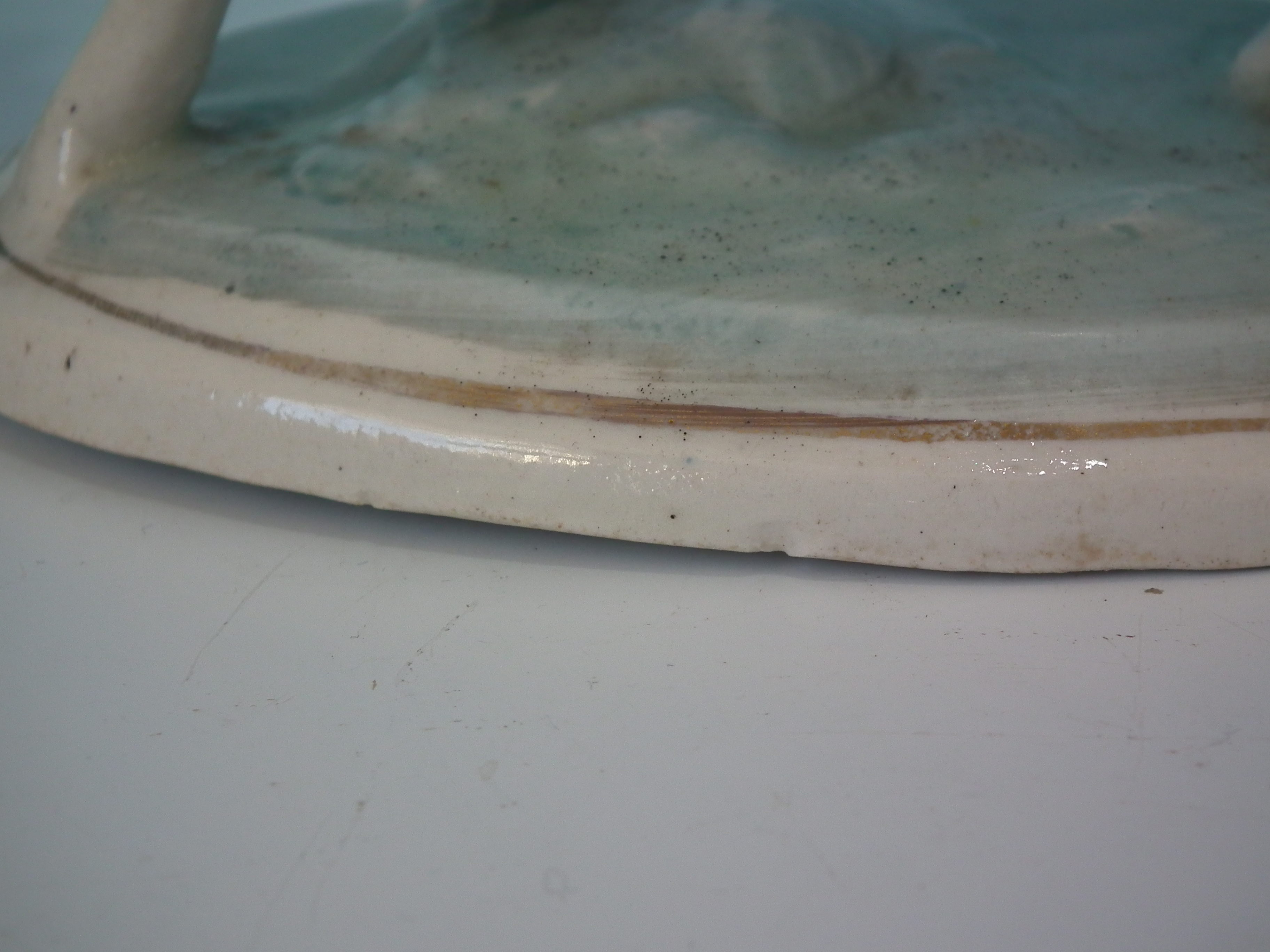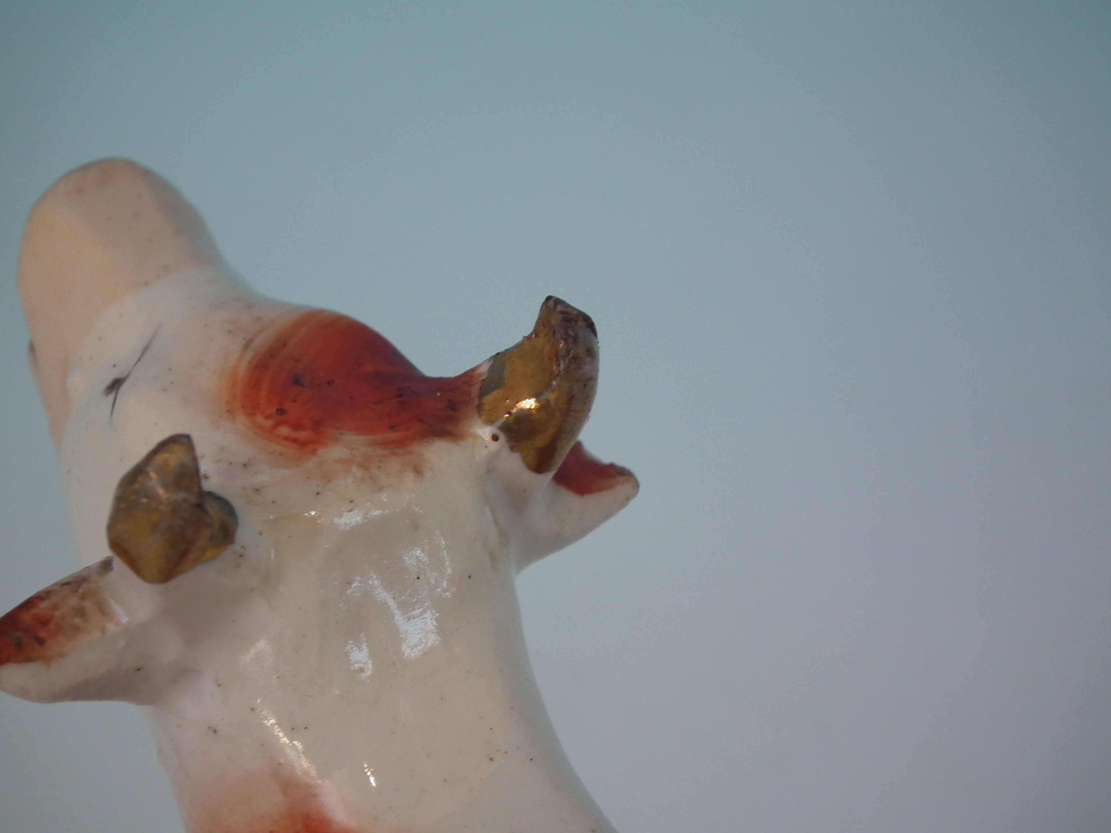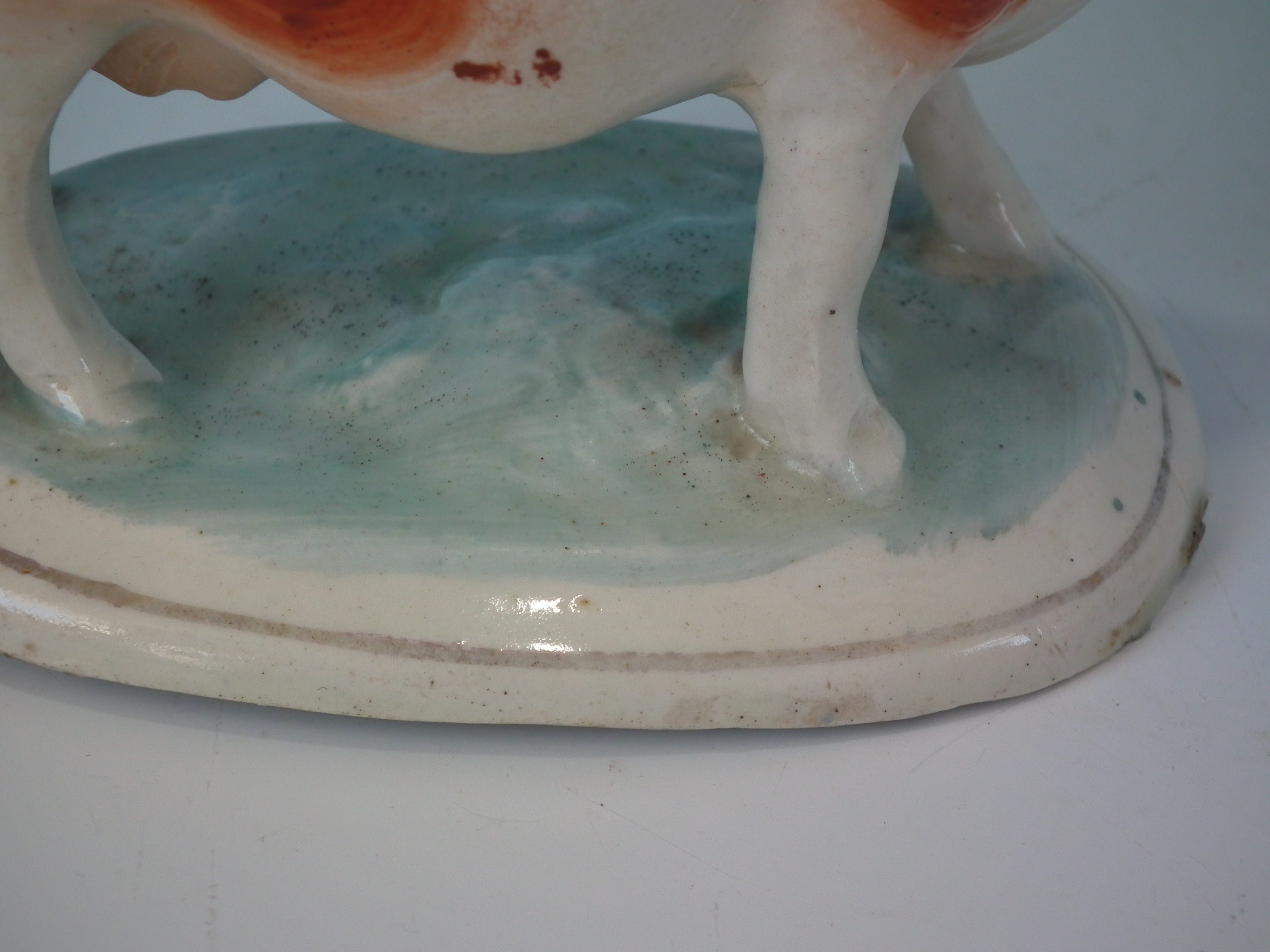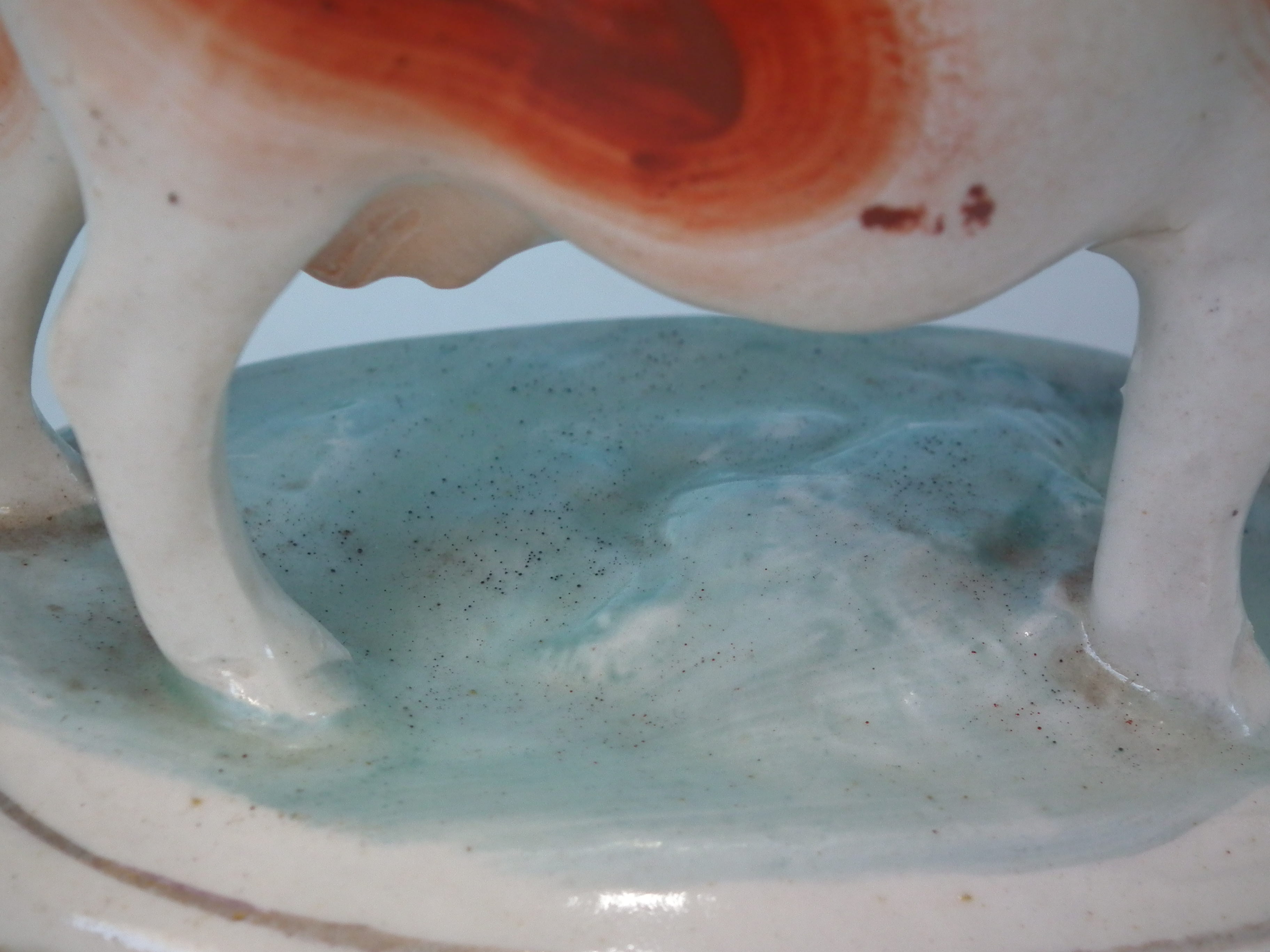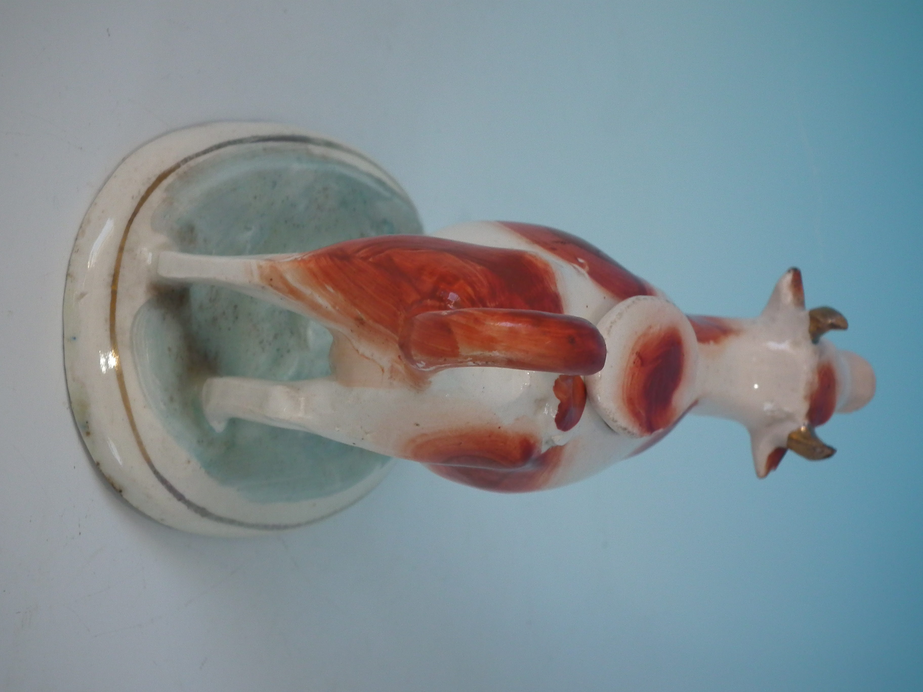 kiln detritus caught in the glaze to the cow and base;
