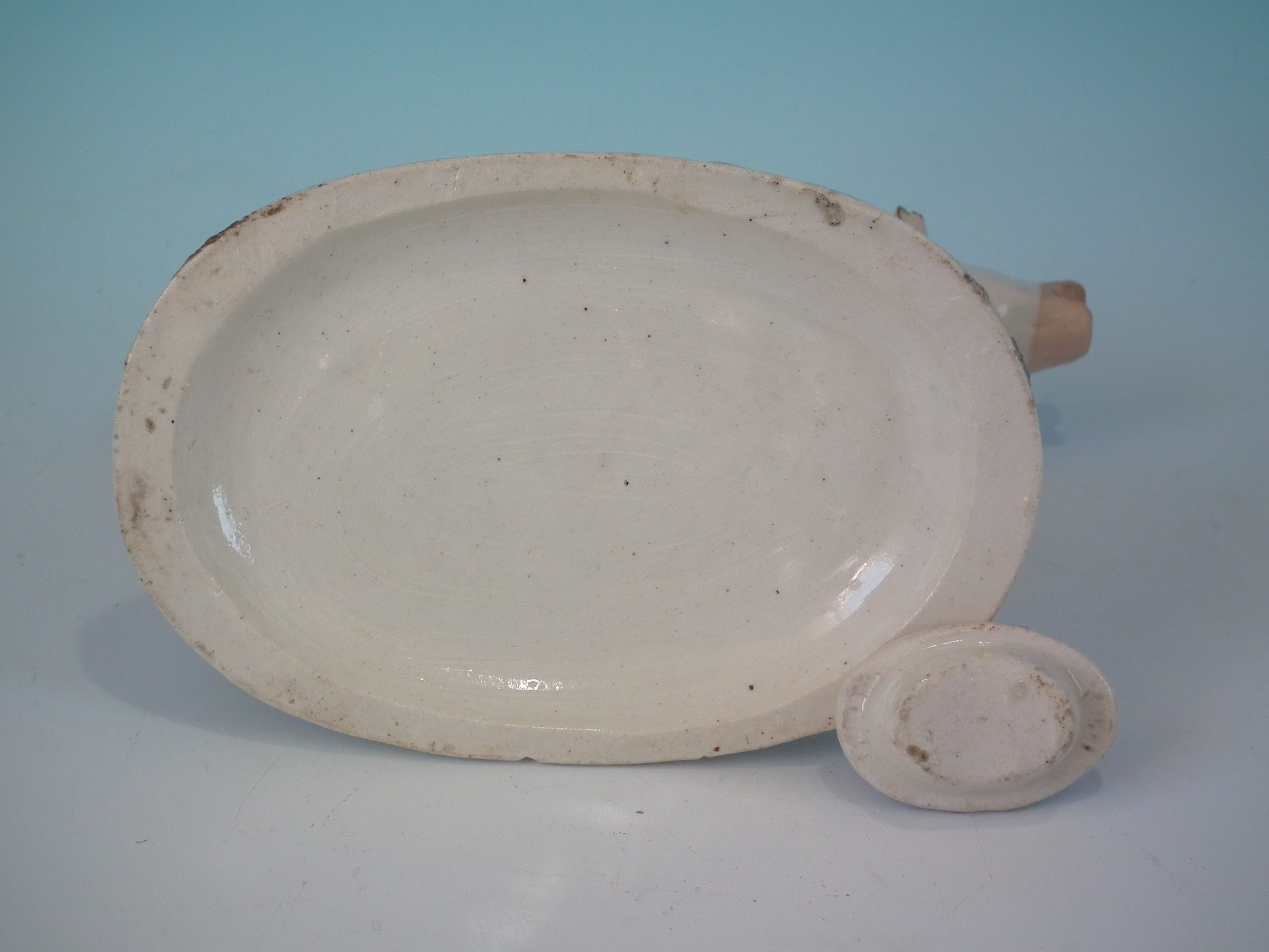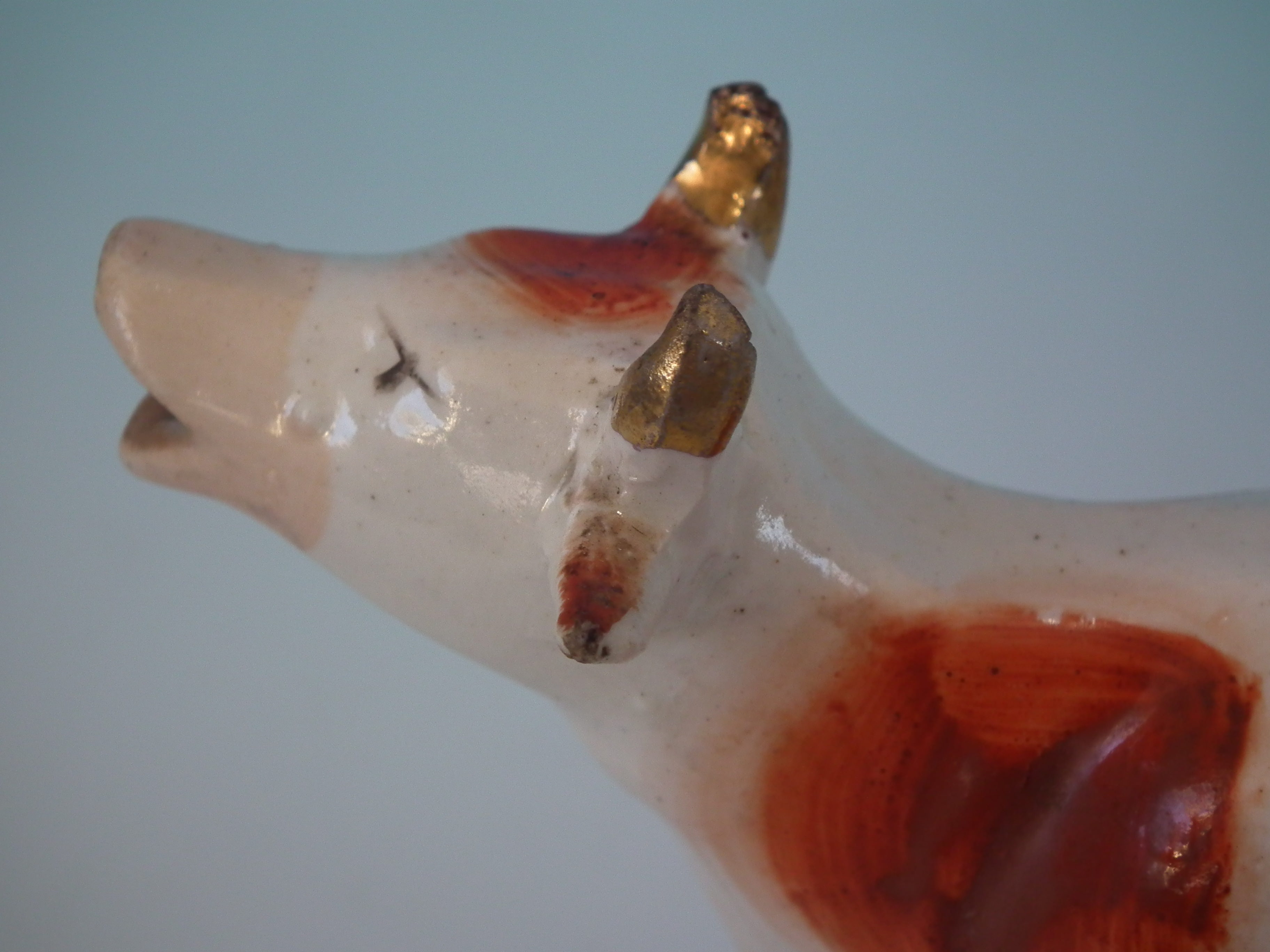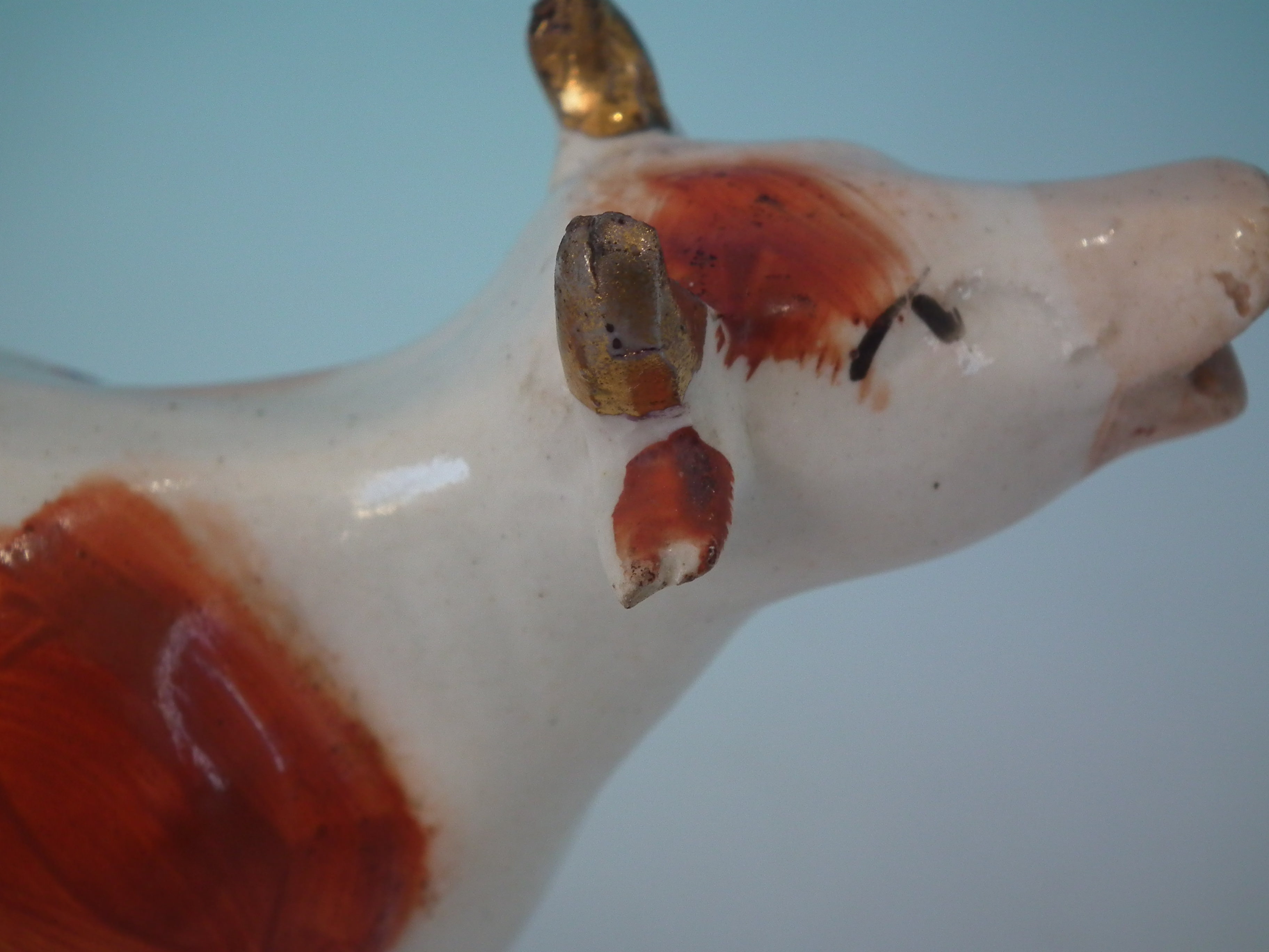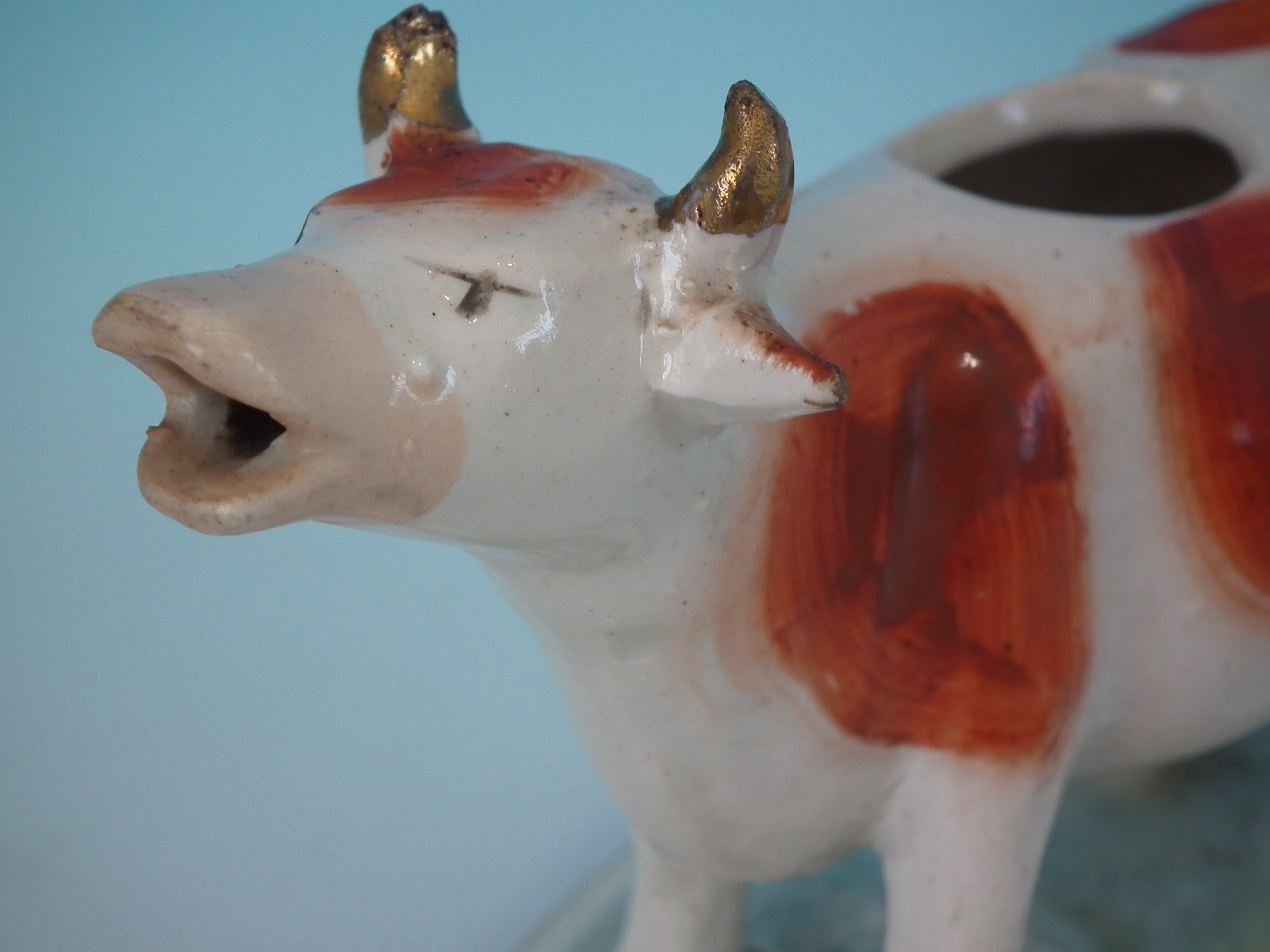 Creamer: Good. No restoration. Small chip to right horn.